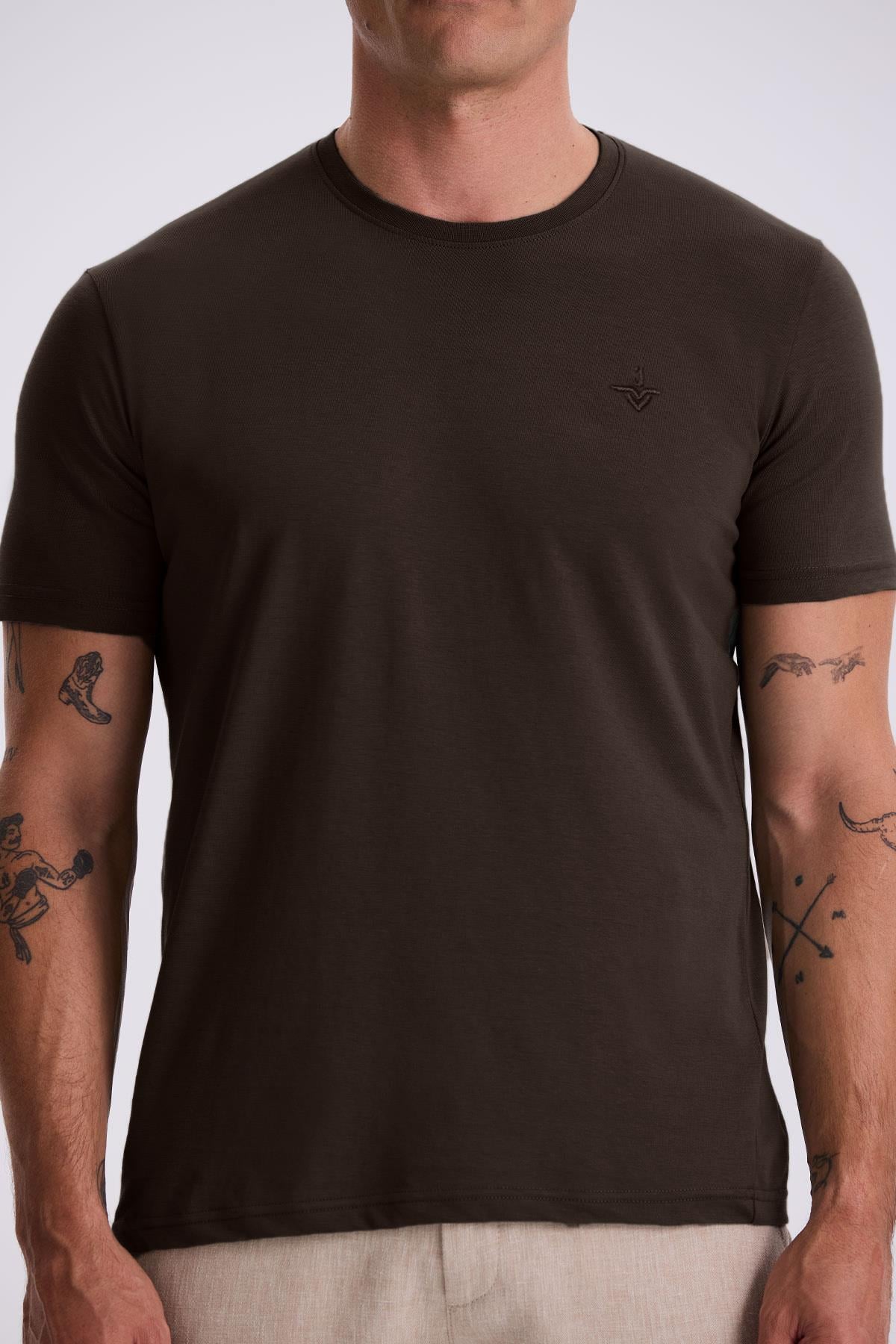 Kahve Dar Kalıp - Slim Fit T-Shirt Bisiklet Yaka
