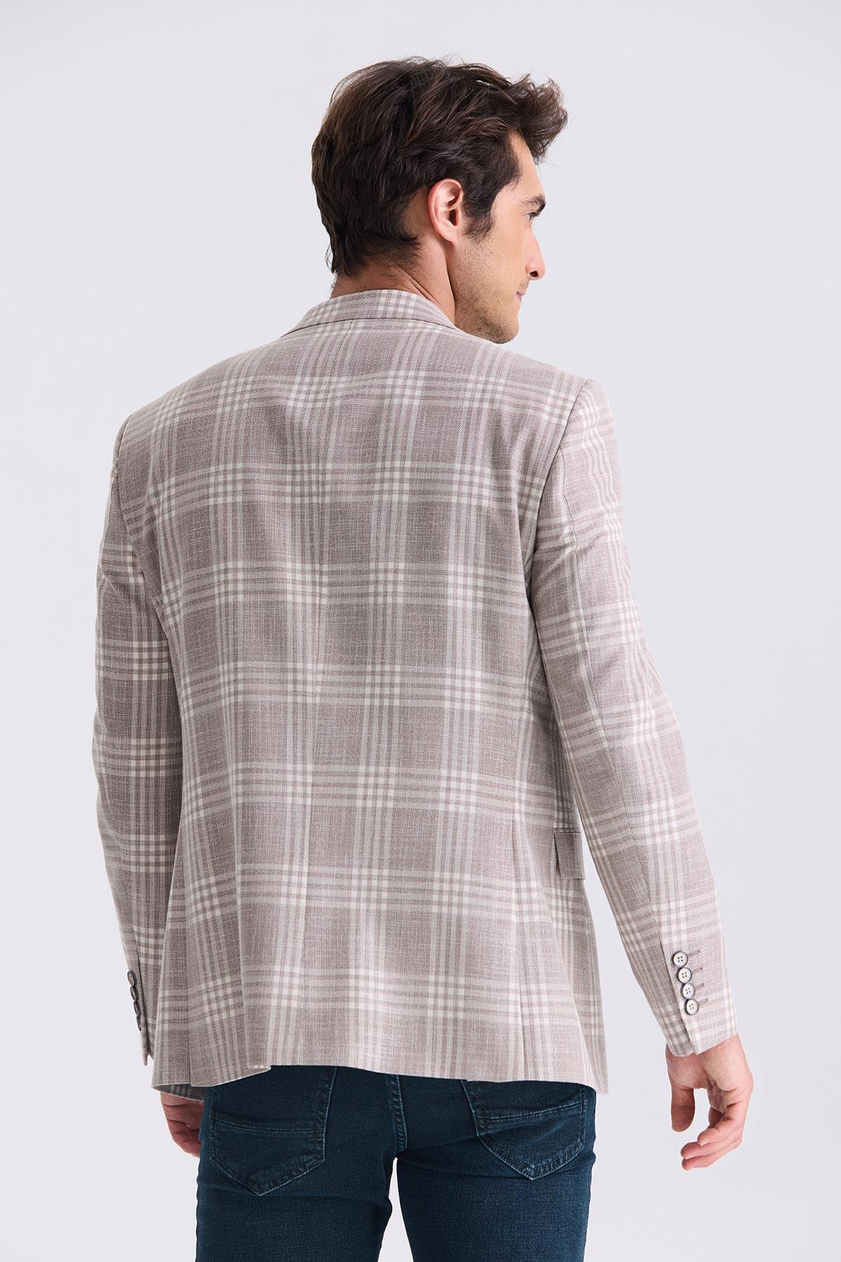 Kahve Klasik Kalıp Kareli Mono Yaka Ceket