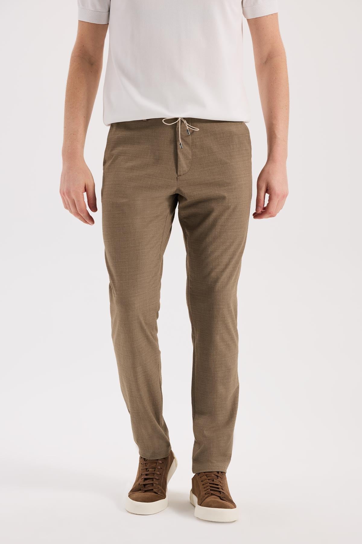 Kahve Rahat Kalıp - Comfort Fit Pantolon Spor Yan Cep