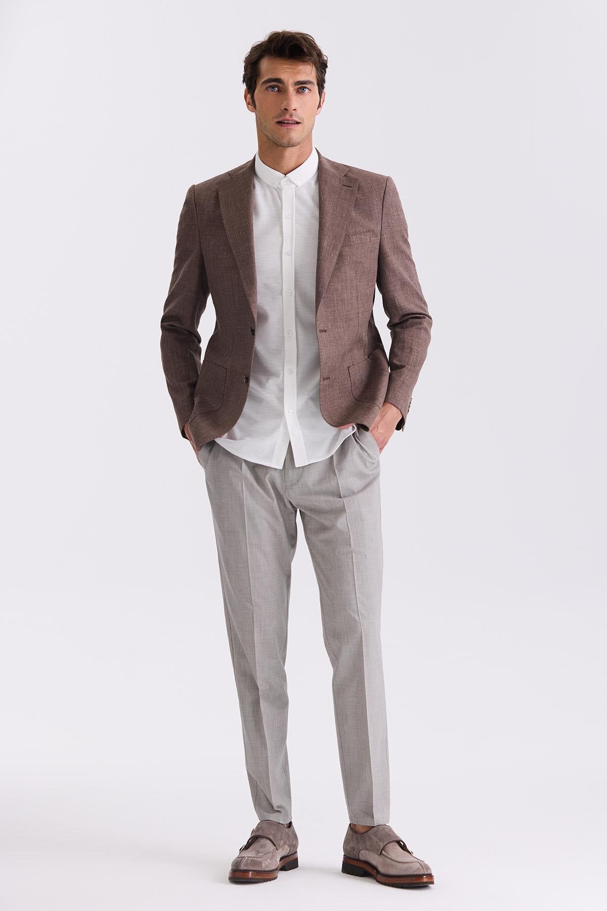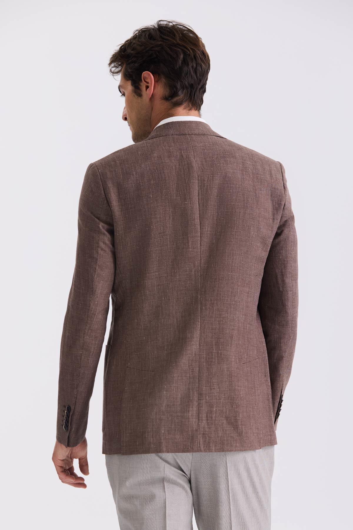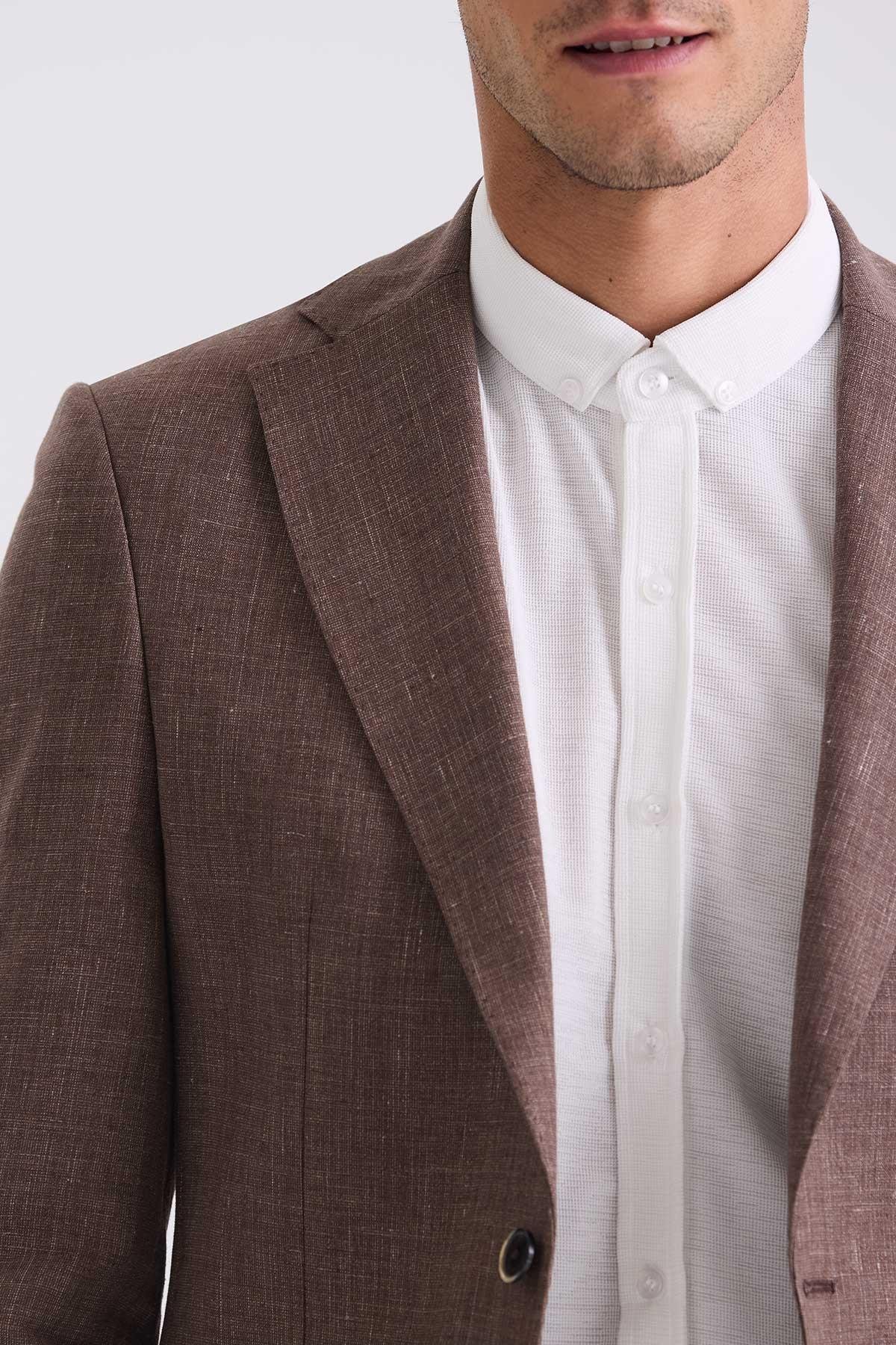 Kahve Slim Fit Mono Yaka Keten Spor Ceket