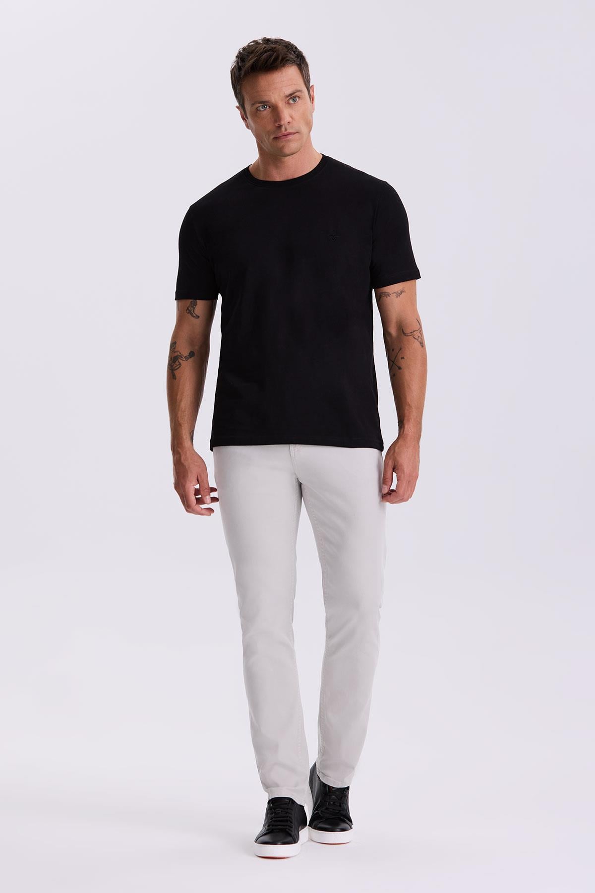 Siyah %100 Pamuk Slim Fit Bisiklet Yaka Basic T-Shirt