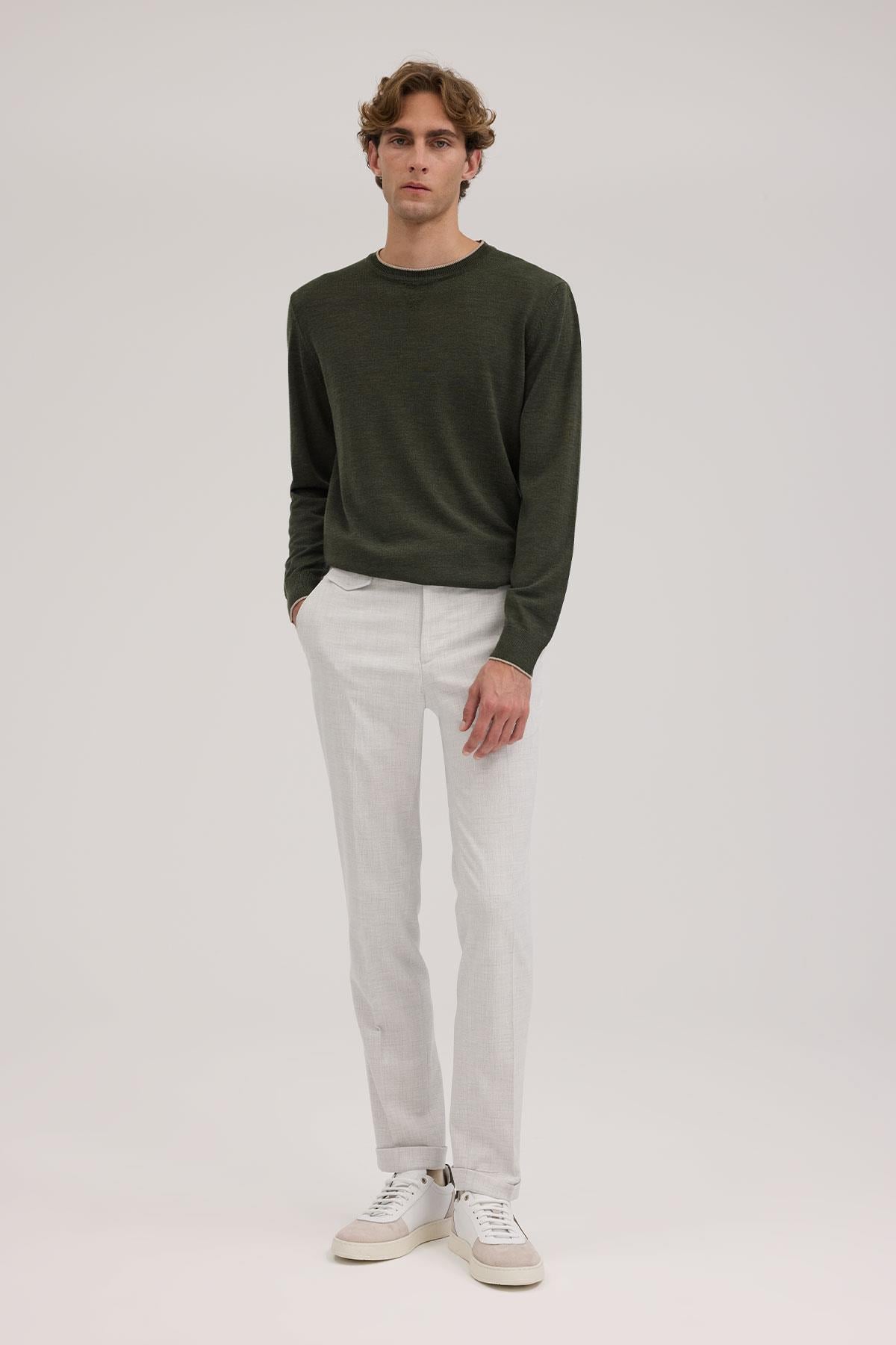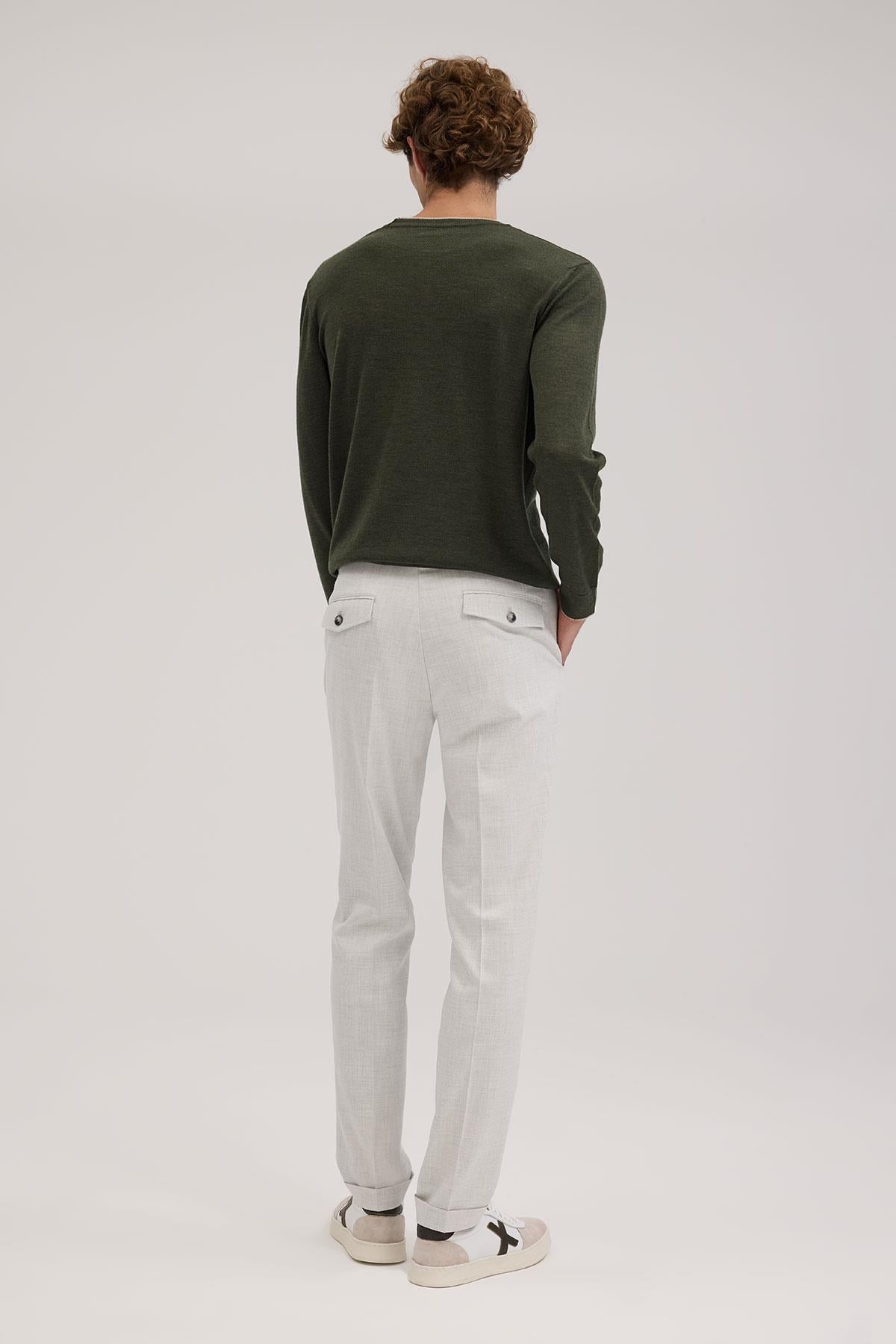 Gri Comfort Fit Duble Paça Kumaş Pantolon
