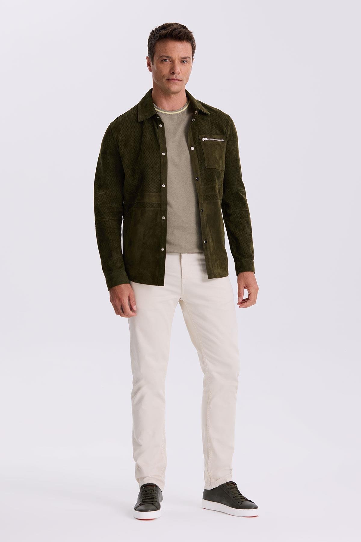 Haki Comfort Fit Bebe Yaka %100 Deri Mont