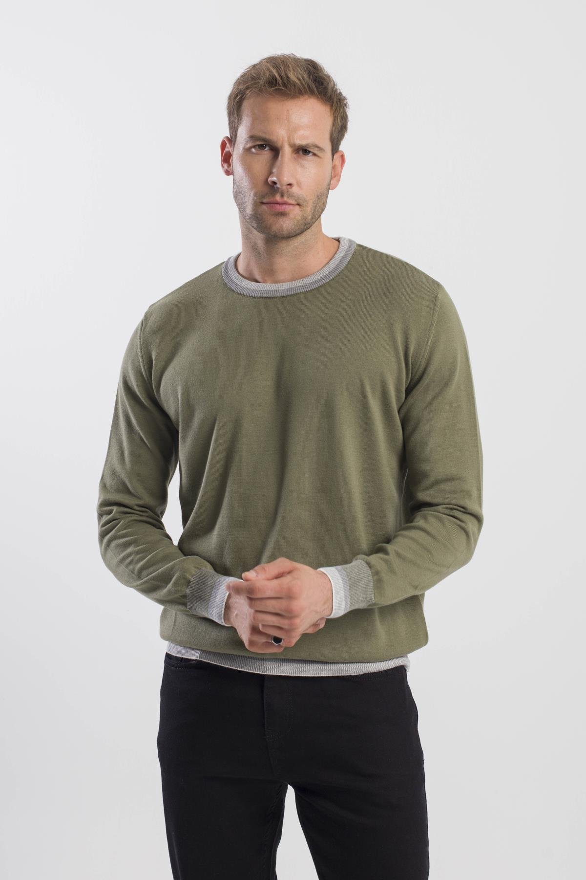 Haki Slim Fit Bisiklet Yaka Triko Kazak