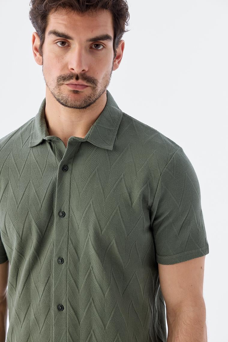 Haki Slim Fit Gömlek Yaka T-Shirt