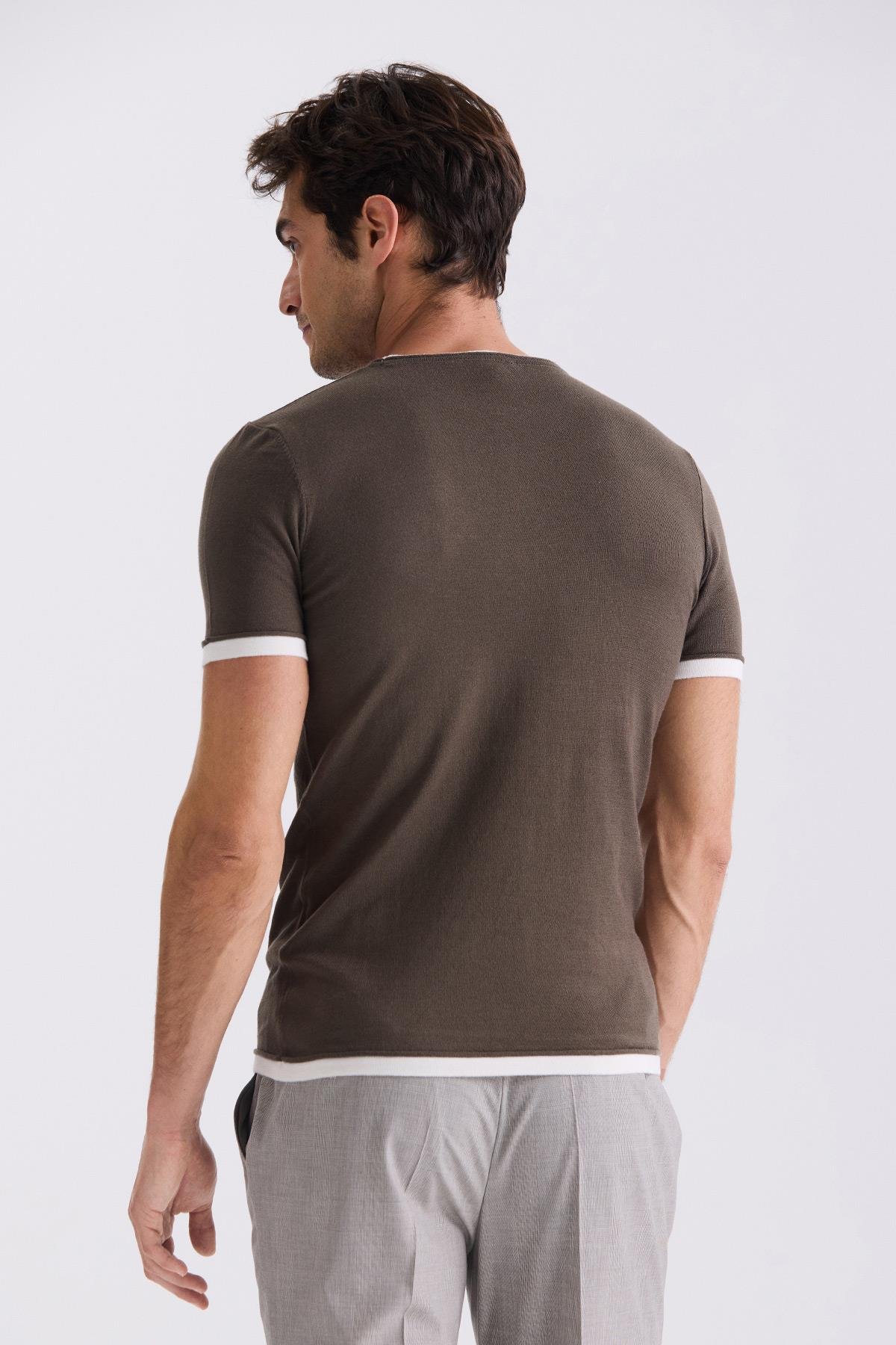 Haki Slim Fit Triko Bisiklet Yaka T-Shirt