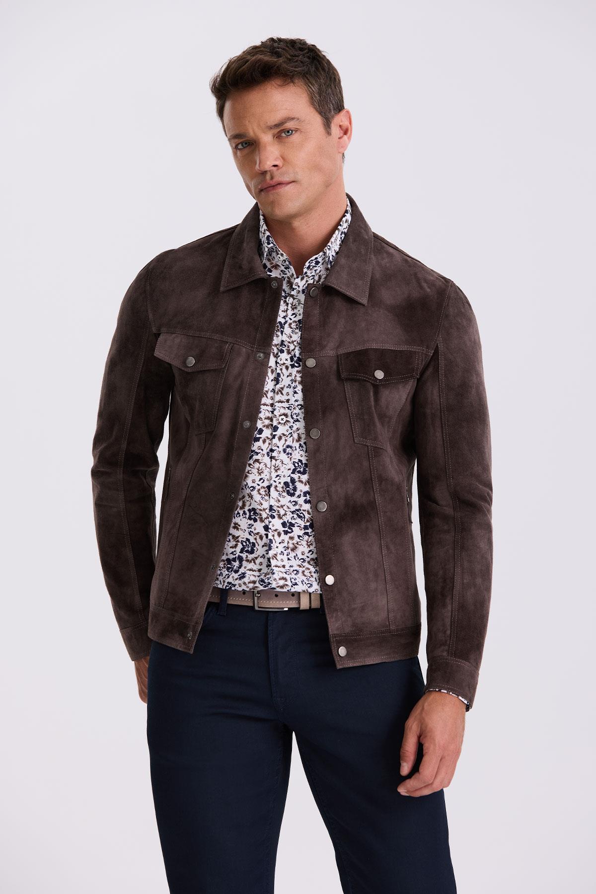 Kahve Comfort Fit Bebe Yaka Cepli %100 Deri Mont
