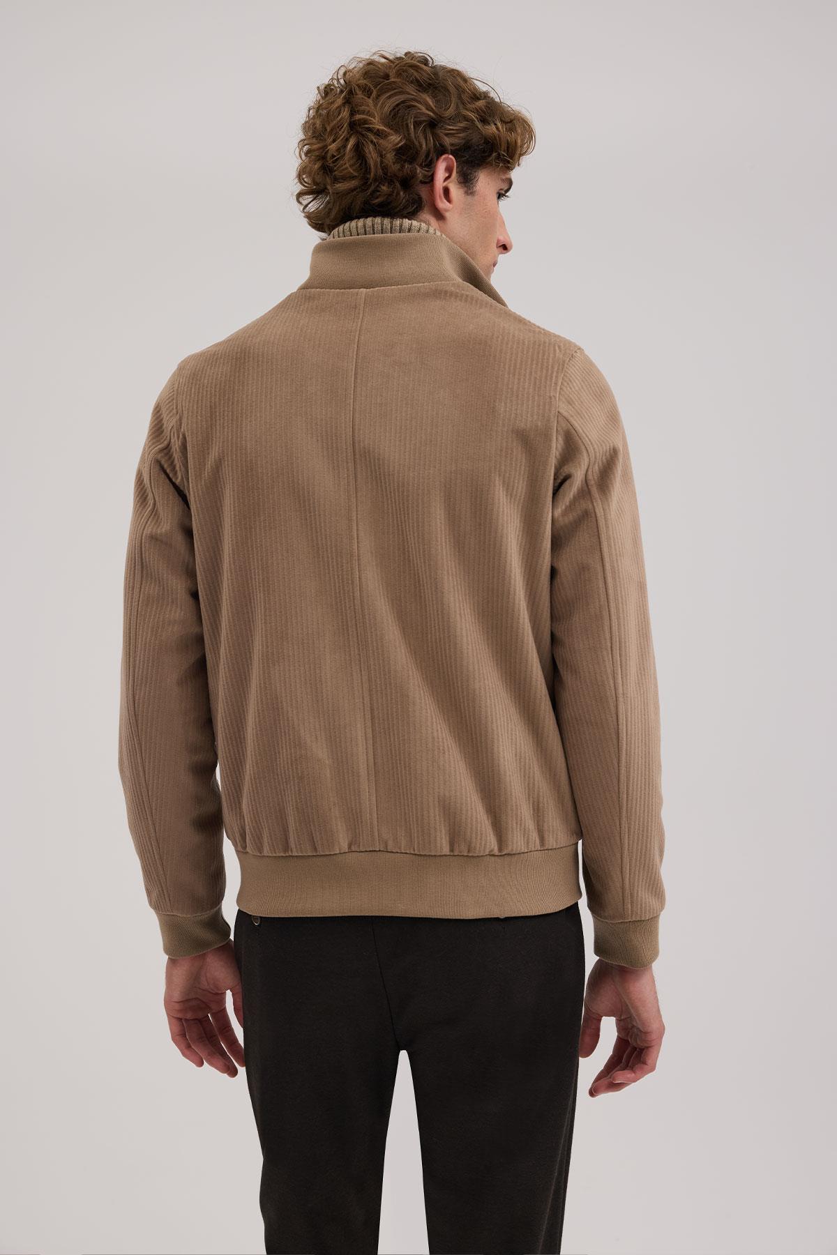 Kahve Comfort Fit Hakim Yaka Kadife Mont