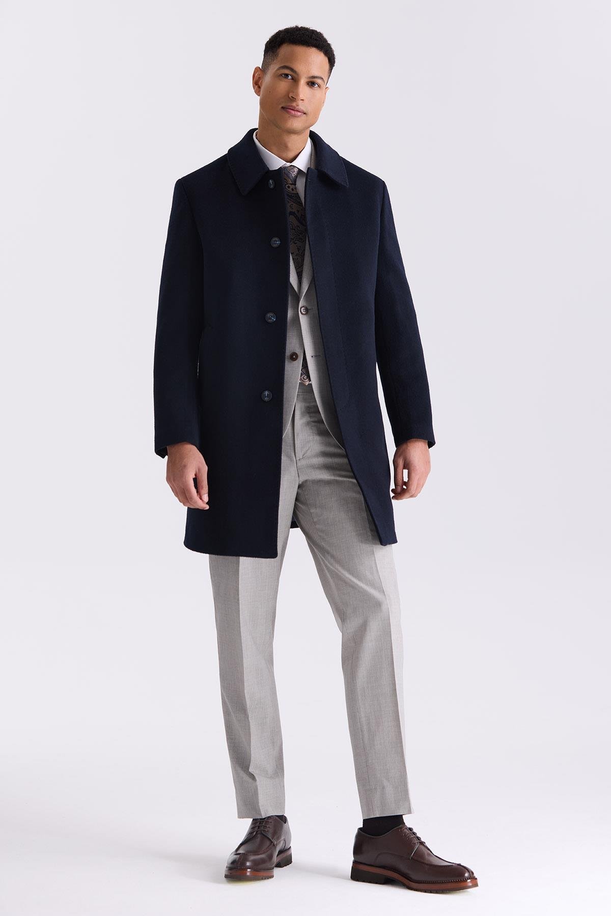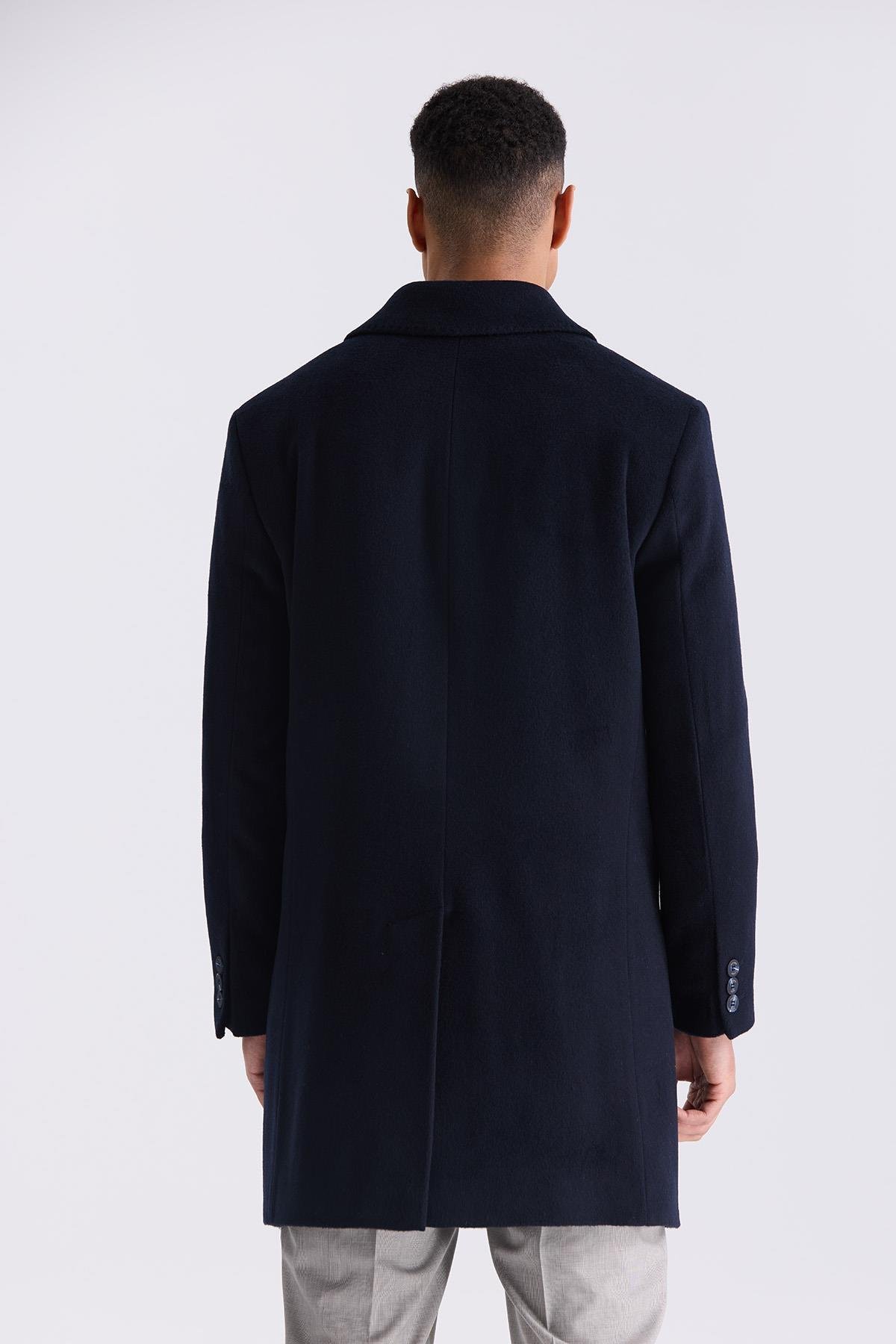 Koyu Lacivert Comfort Fit Berberi Yaka Yünlü Kaşe Kaban