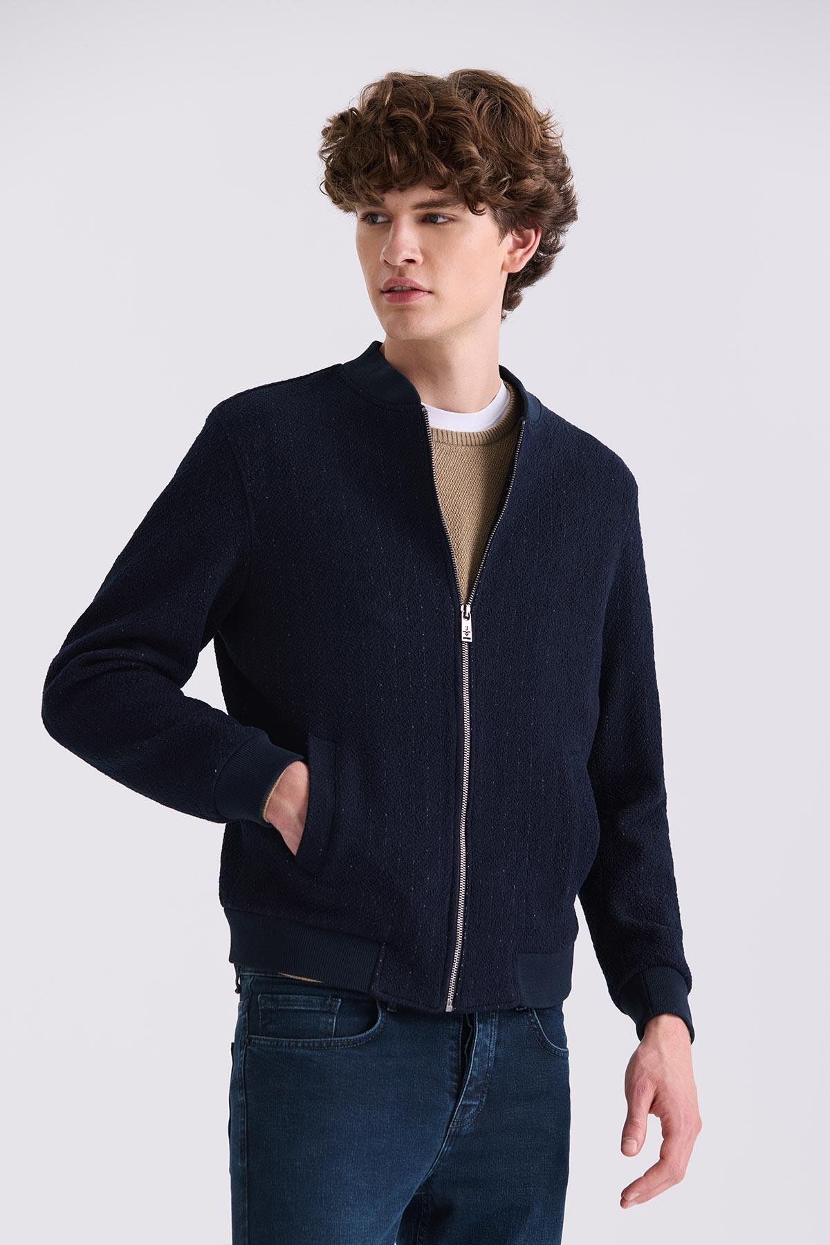 Koyu Lacivert Regular Fit Mono Yaka Mevsimlik Mont