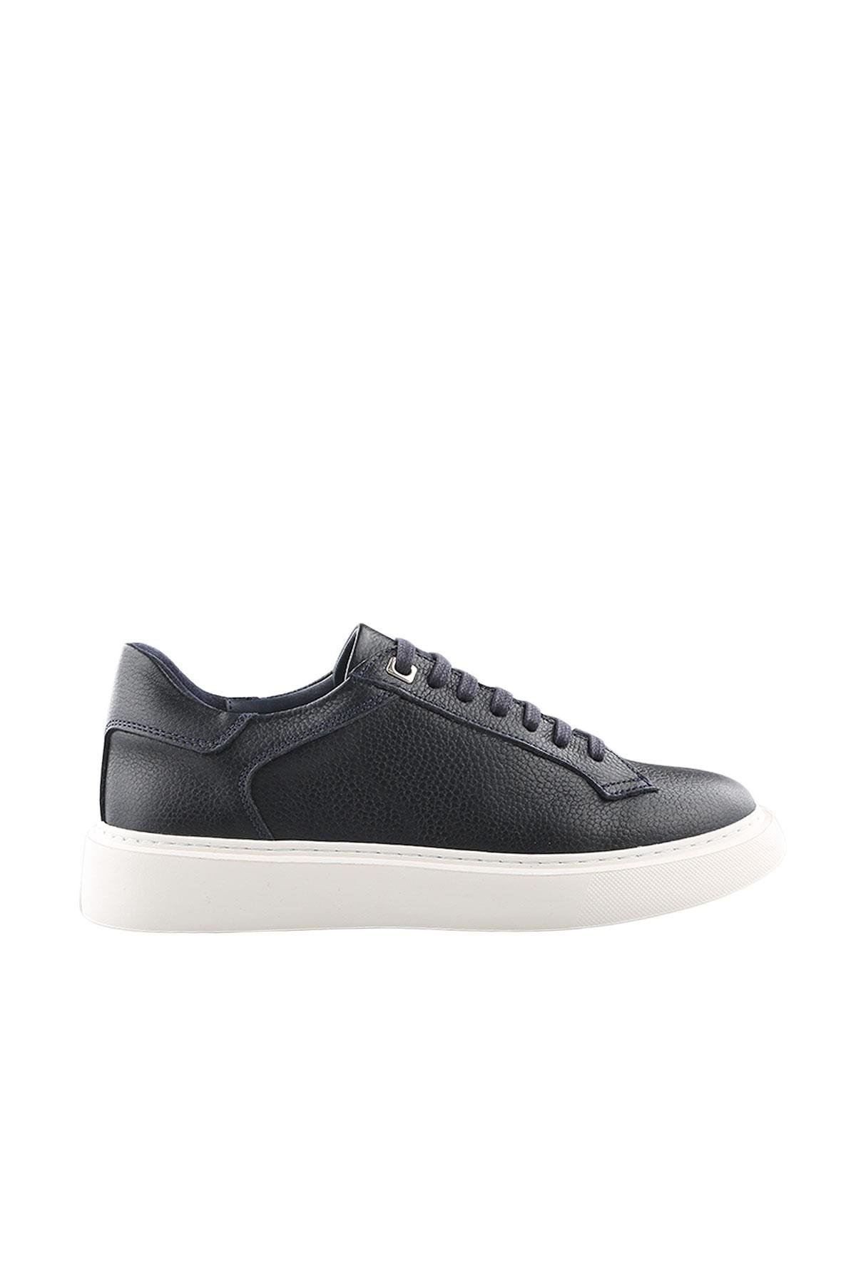 Lacivert %100 Deri Bağcıklı Günlük Sneaker Ayakkabı