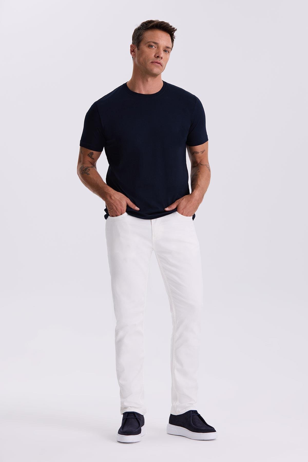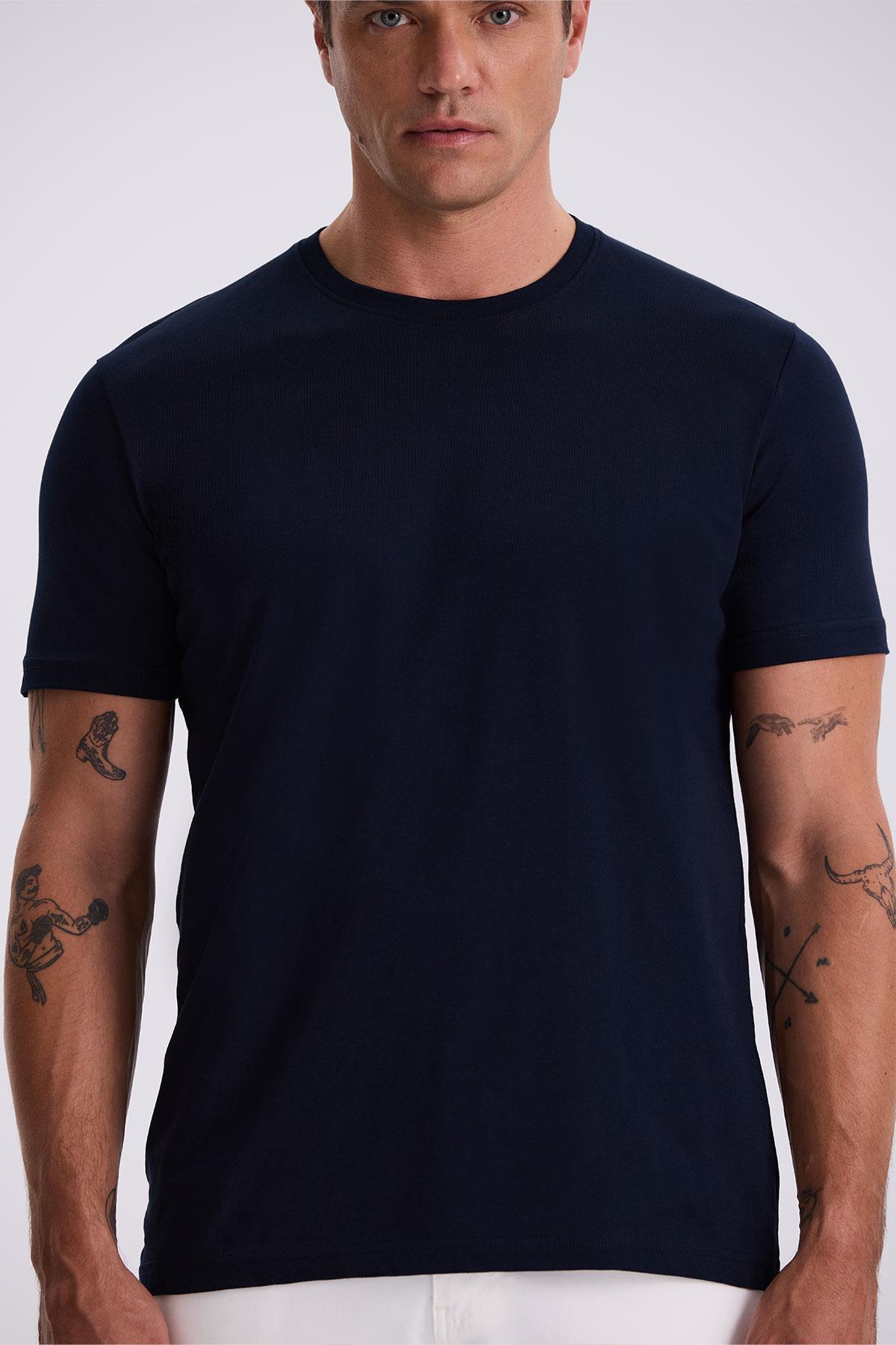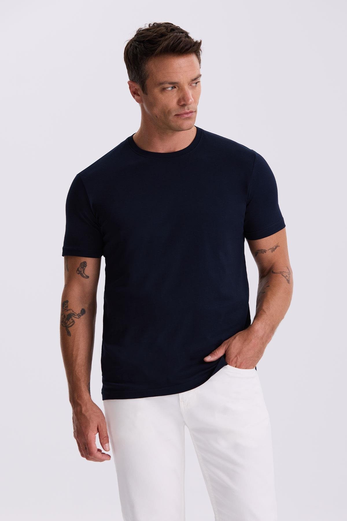 Lacivert %100 Pamuk Slim Fit Bisiklet Yaka Basic T-Shirt