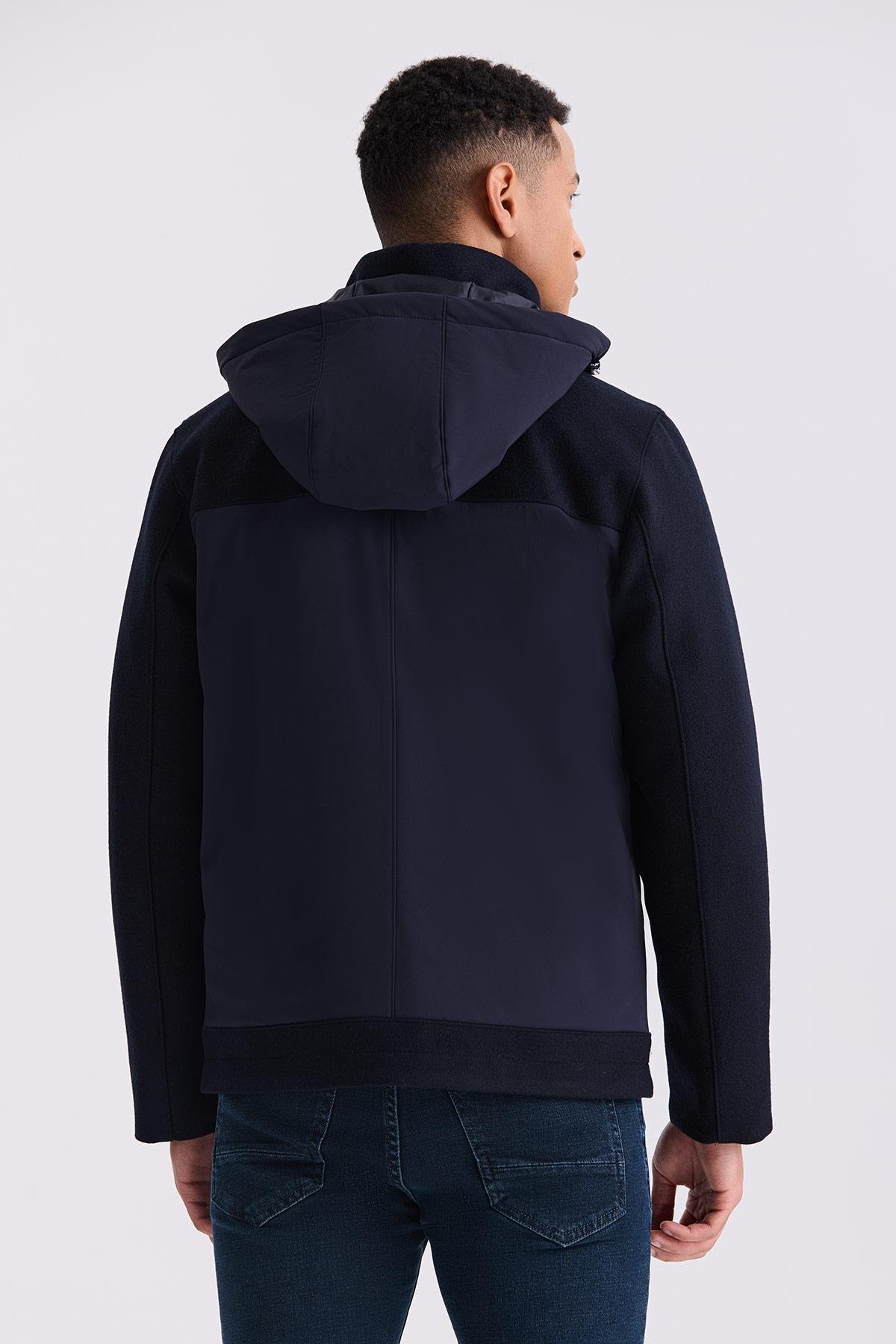 Lacivert Comfort Fit Kapüşonlu Fermuar Detaylı Kışlık Mont