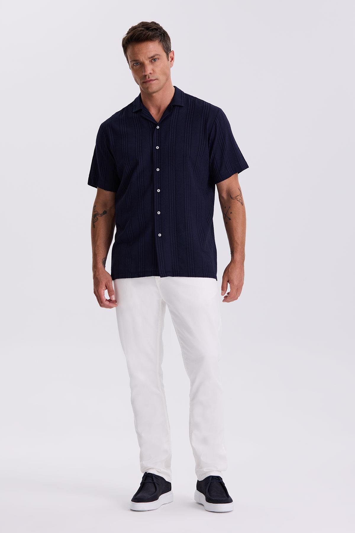 Lacivert Klasik Fit Apaş Yaka Rahat Kısa Kollu Gömlek