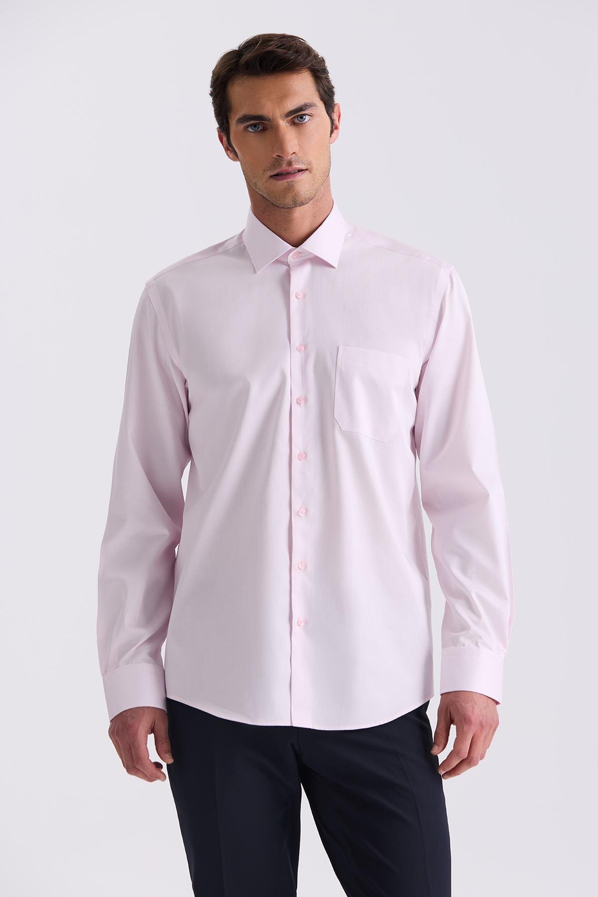 Pembe Classic Fit %100 Pamuk Gömlek
