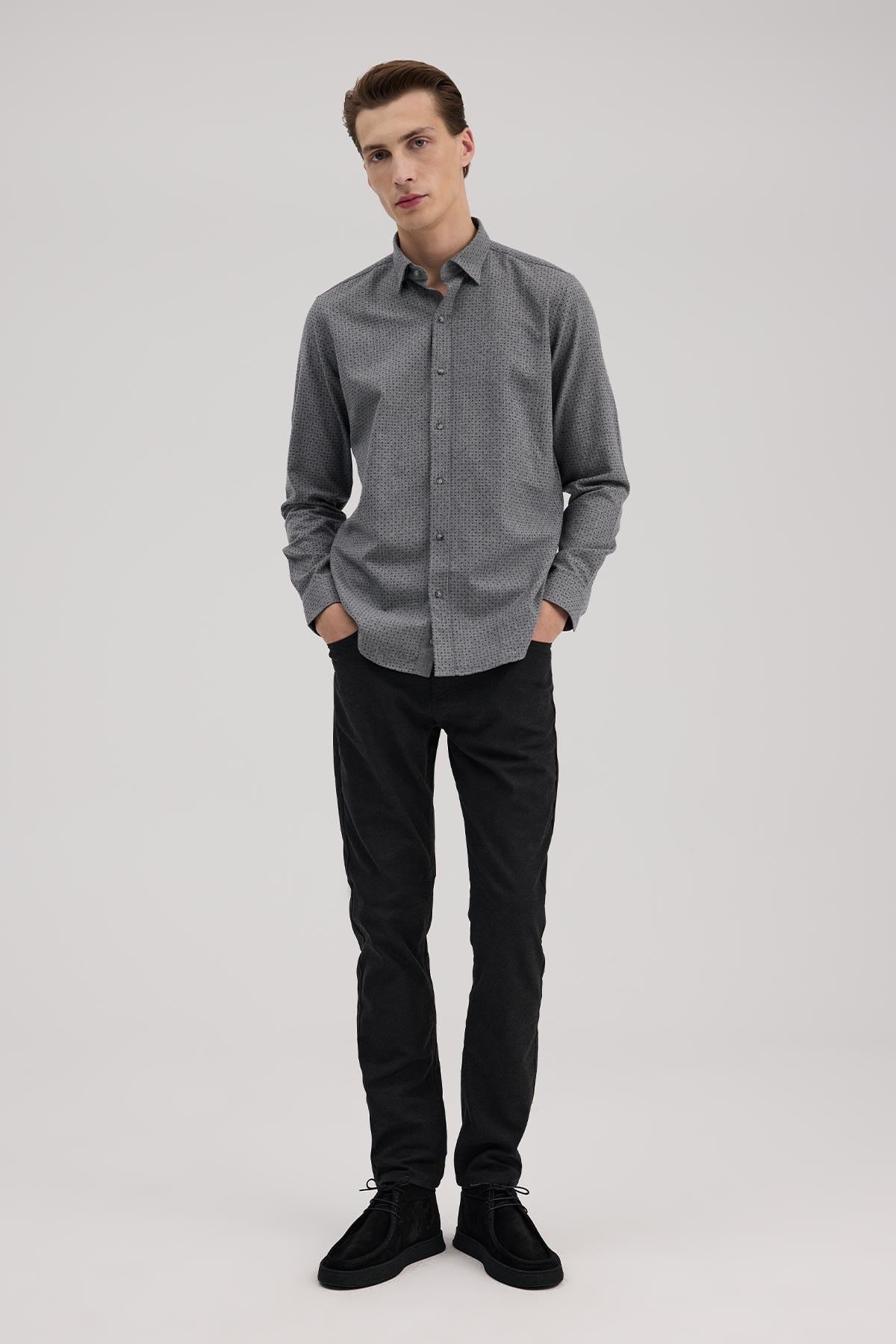 Antrasit Rahat Kalıp - Comfort Fit Gömlek Alttan Düğmeli Yaka
