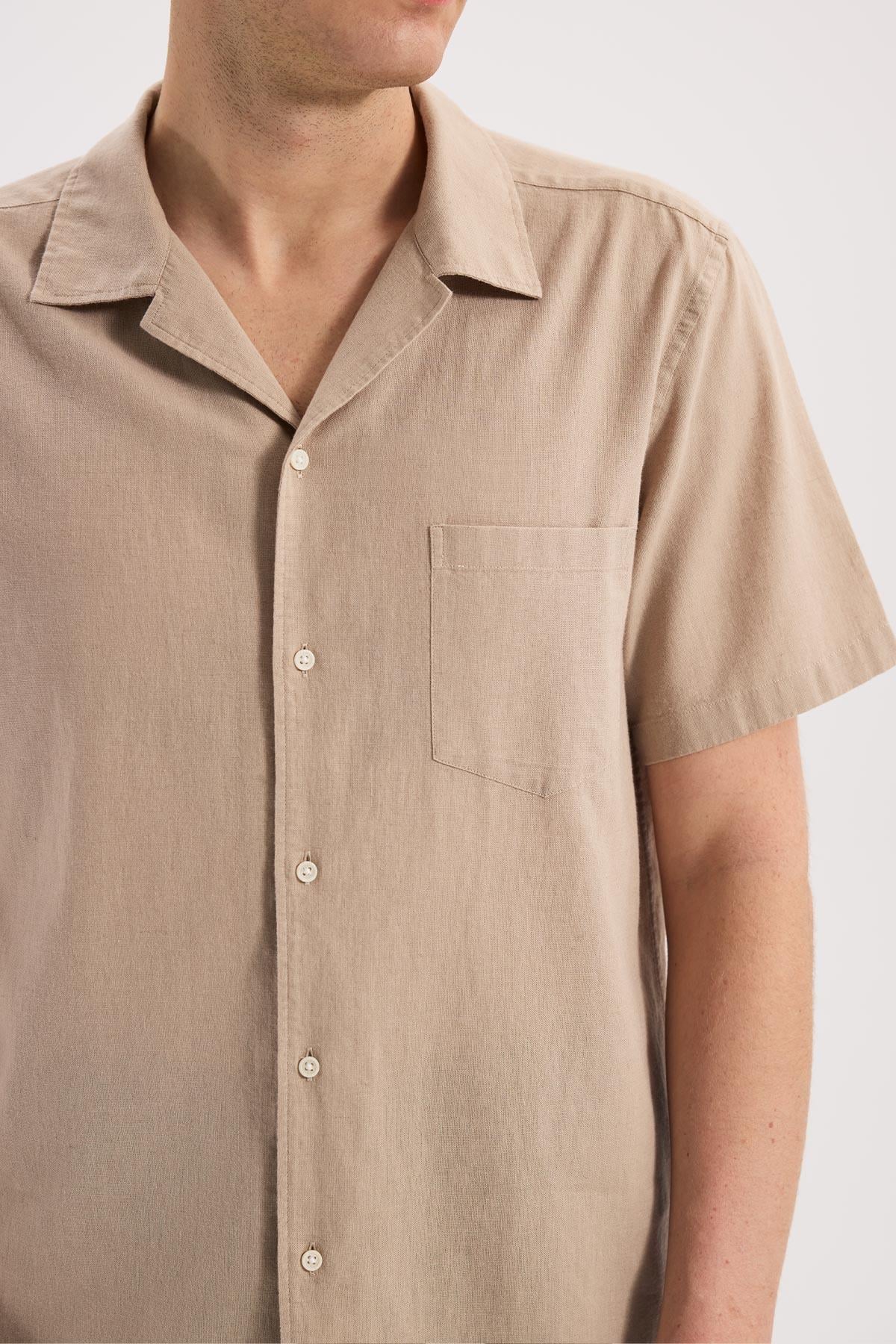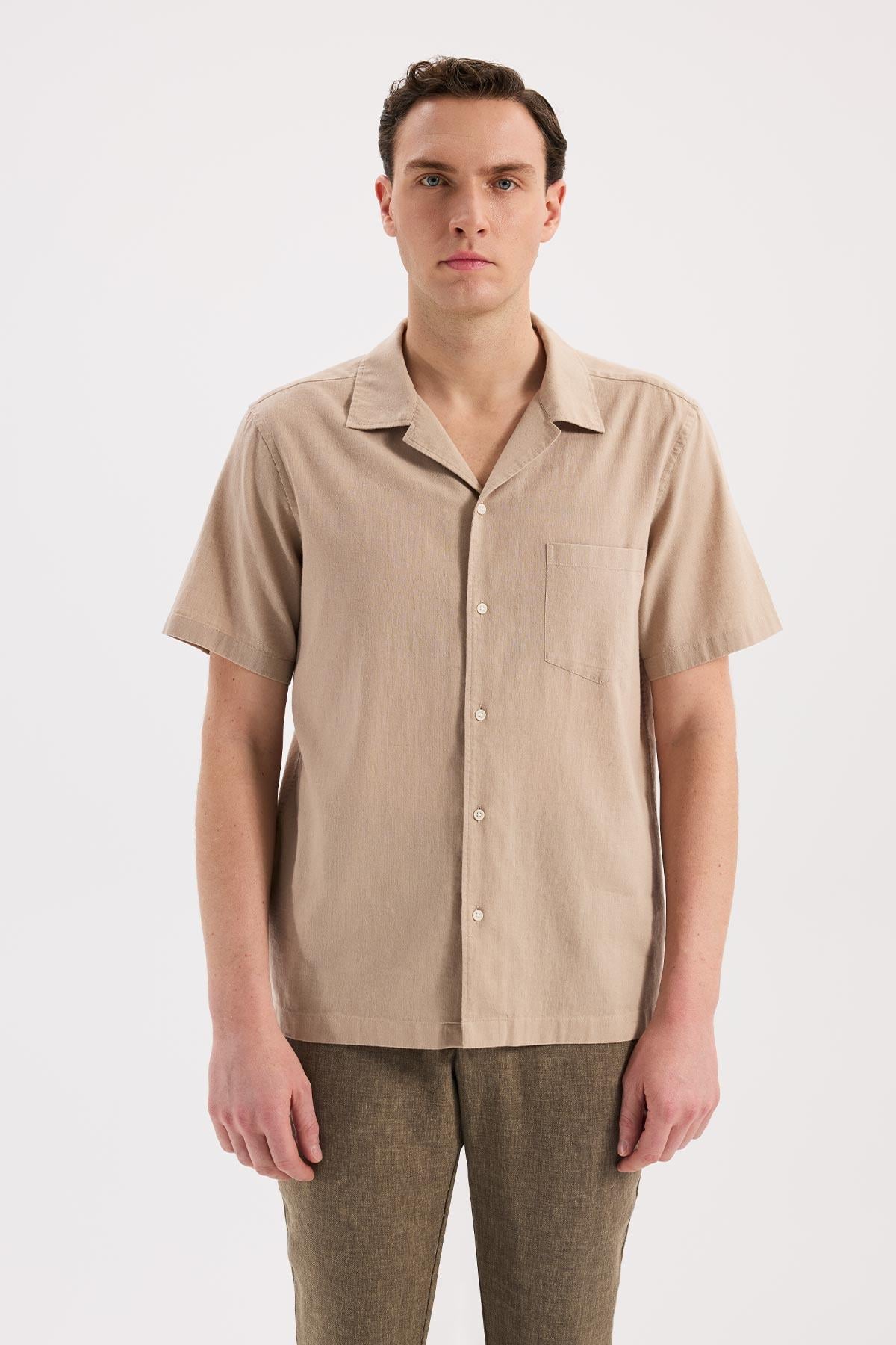 Bej Rahat Kalıp - Comfort Fit Gömlek Klasik Yaka
