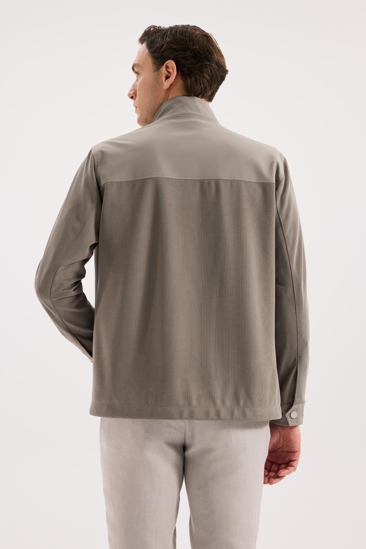 Bej Rahat Kalıp - Comfort Fit Mont Hakim Yaka