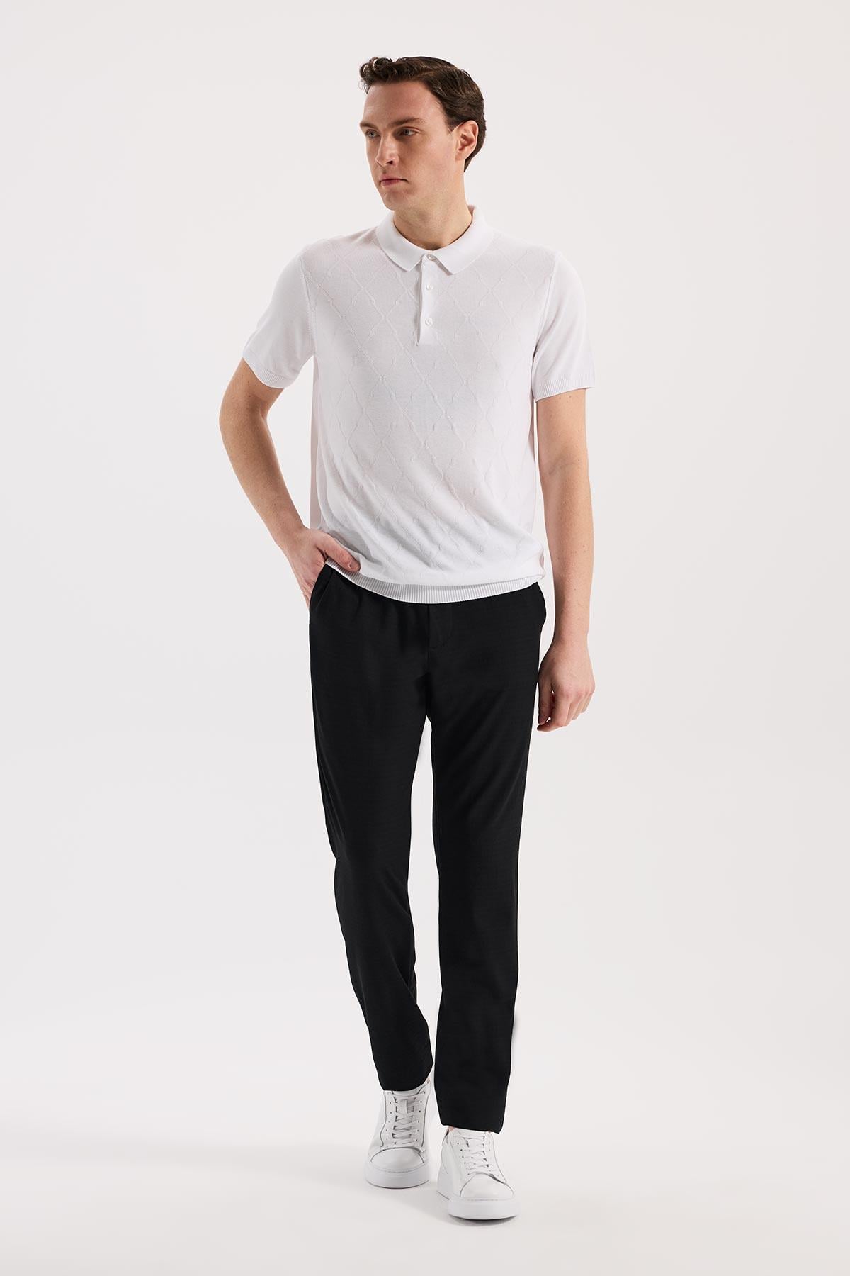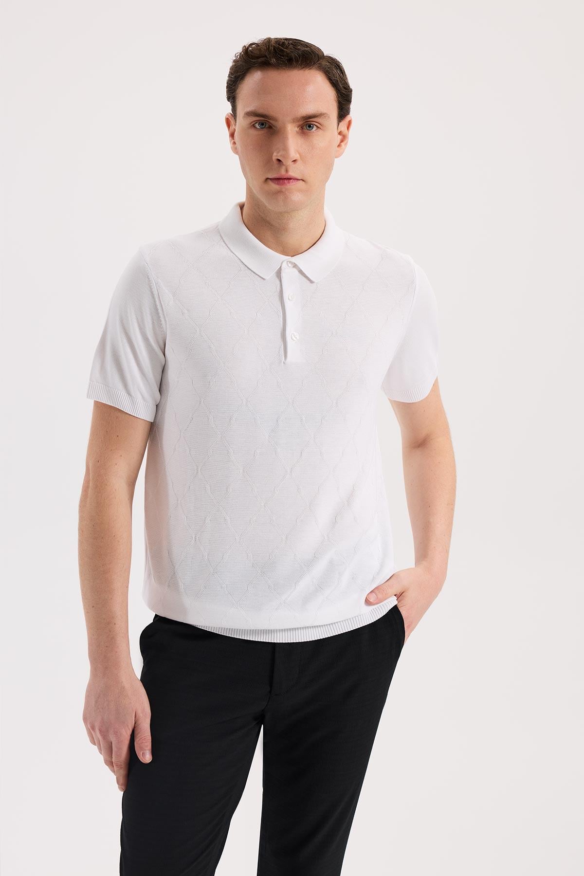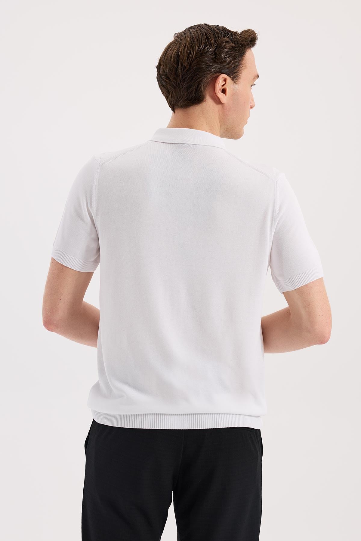 Beyaz Dar Kalıp - Slim Fit T-Shirt Polo Düğmeli