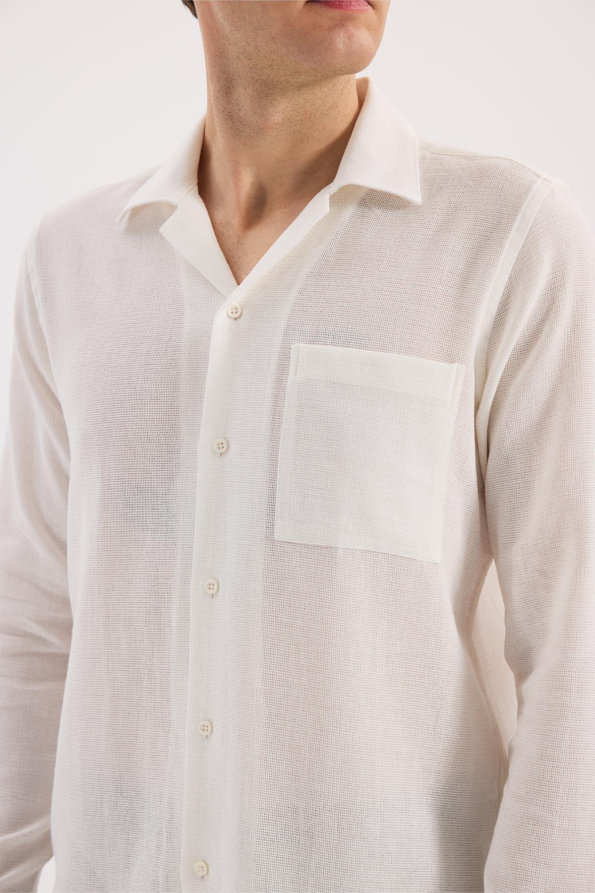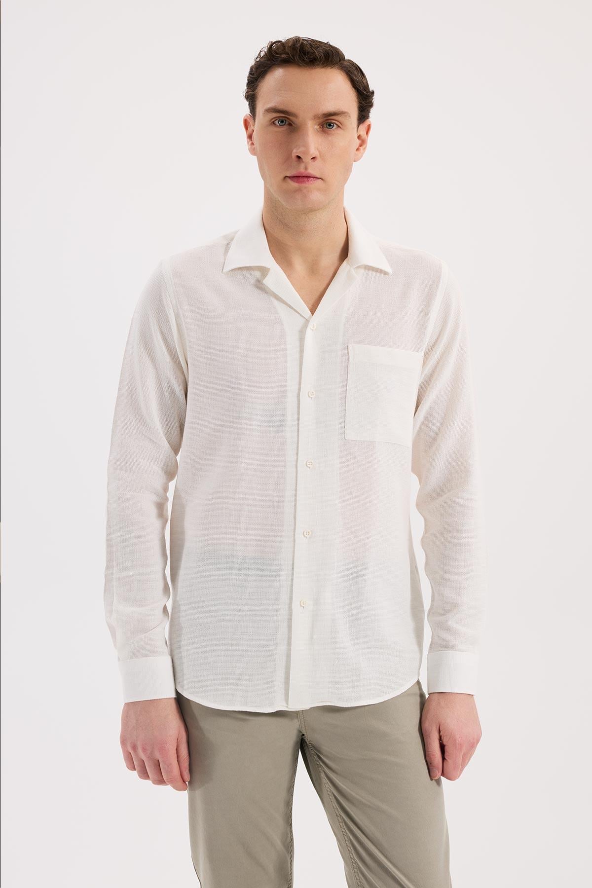 Beyaz Rahat Kalıp - Comfort Fit Gömlek Apaş Yaka
