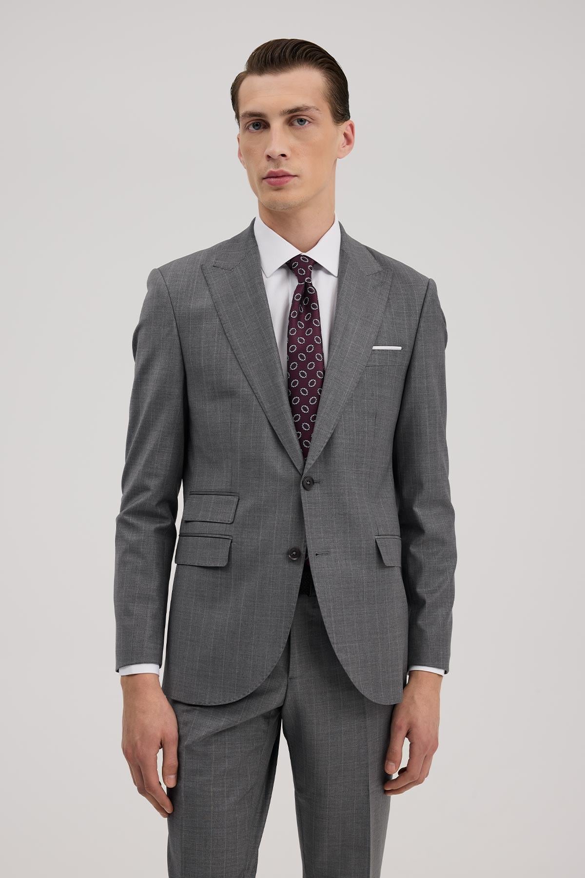 Dar Kalıp - Slim Fit Serili Takım Elbise-Jakamen Sivri Yaka Serili