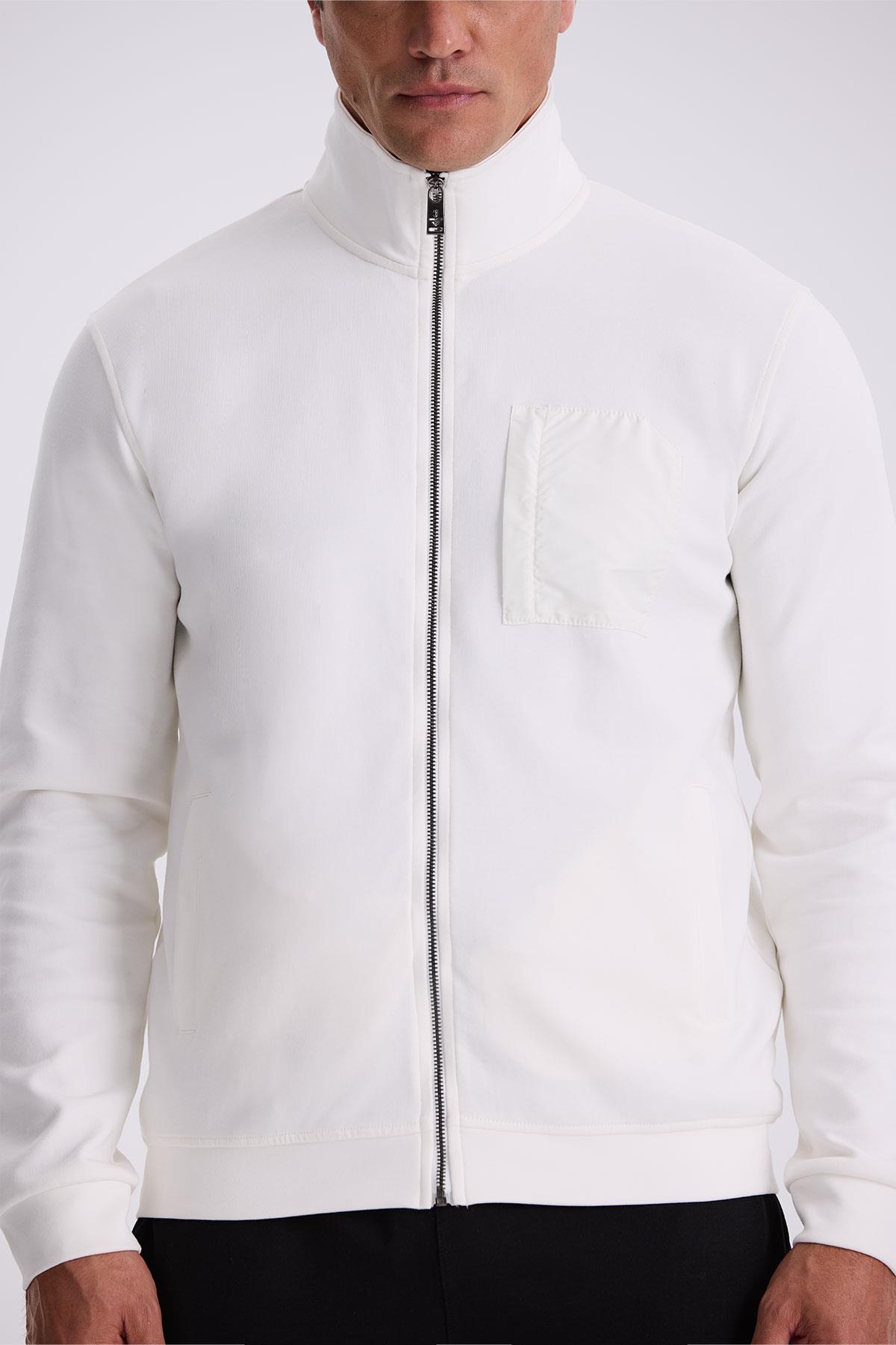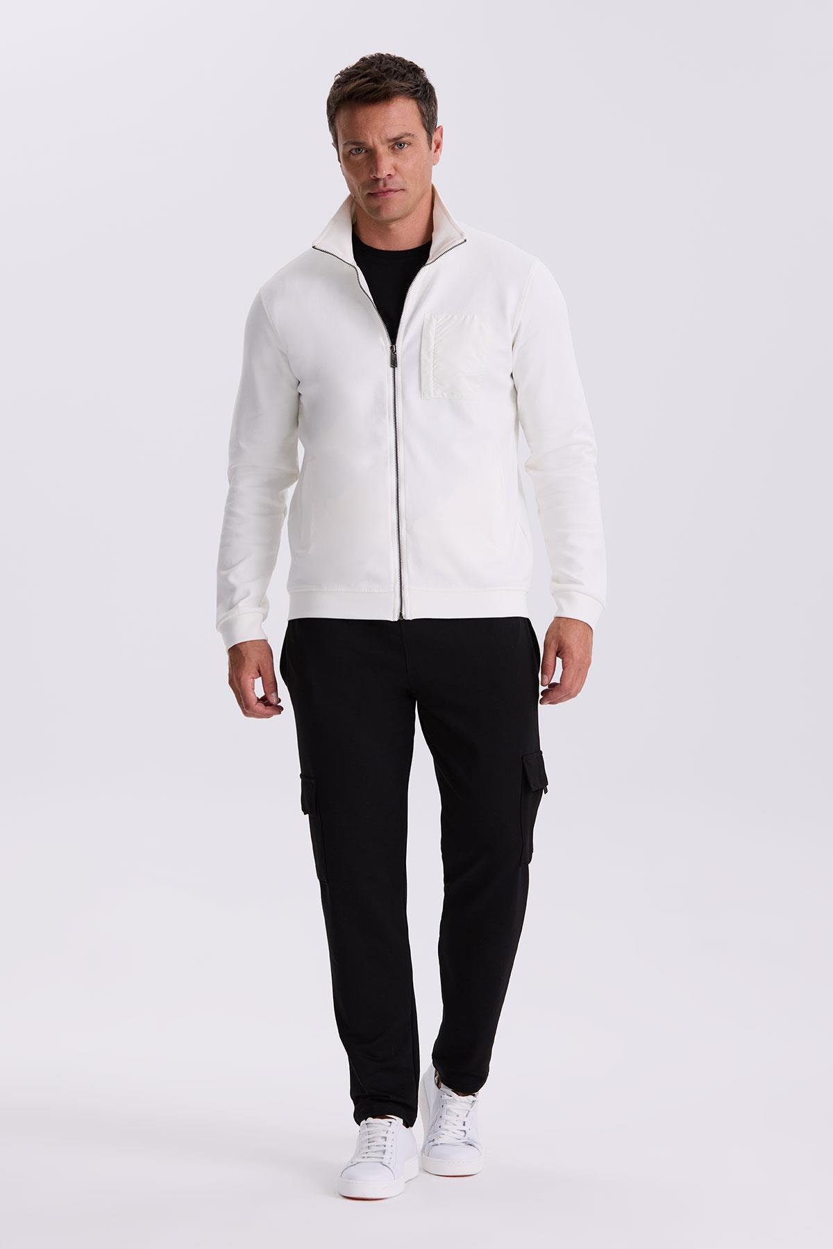 Ekru Slim Fit Fermuarlı Pamuklu Likralı Eşofman Üstü