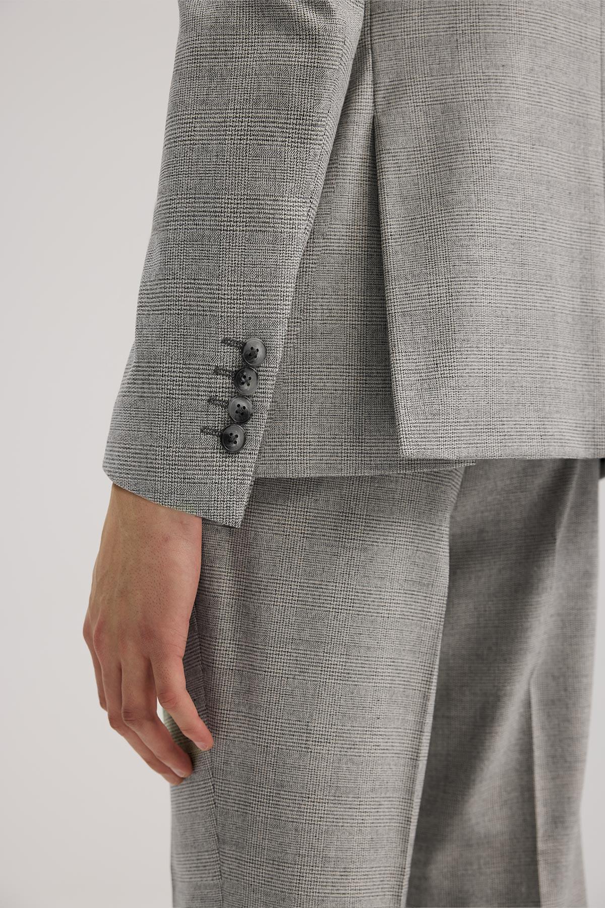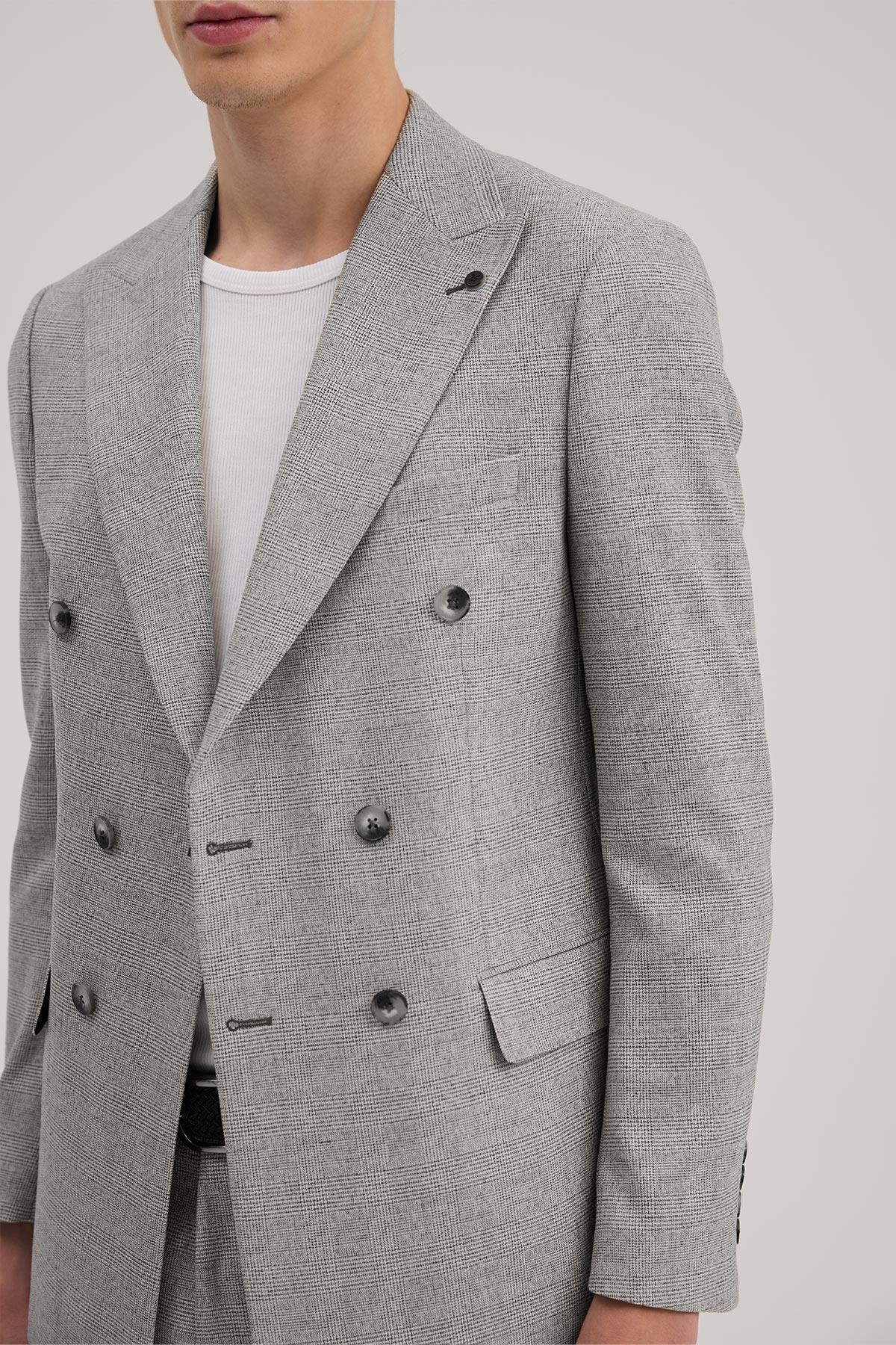 Gri Dar Kalıp - Slim Fit Takım Elbise Kruvaze