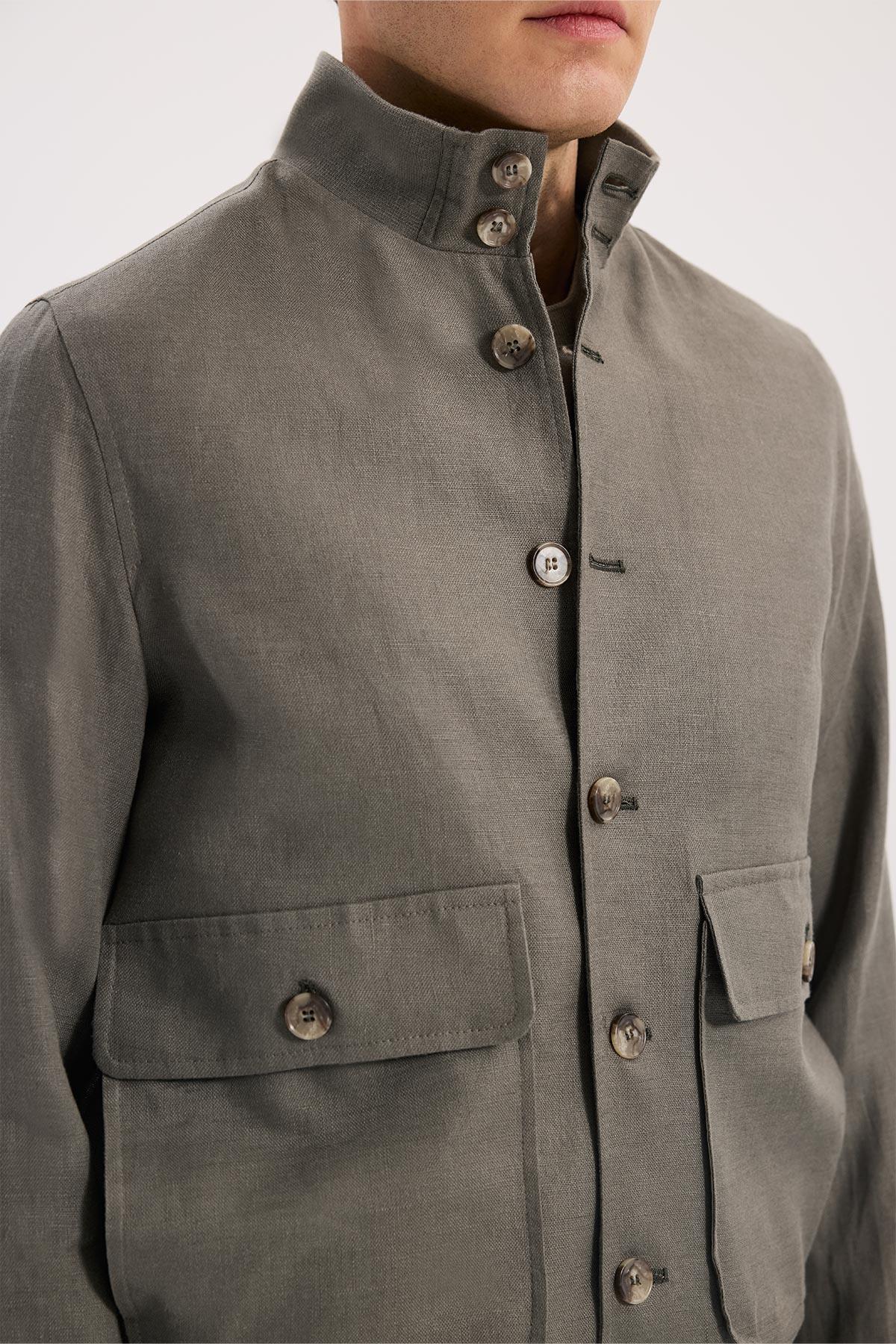 Haki Rahat Kalıp - Comfort Fit Mont Gömlek Yaka