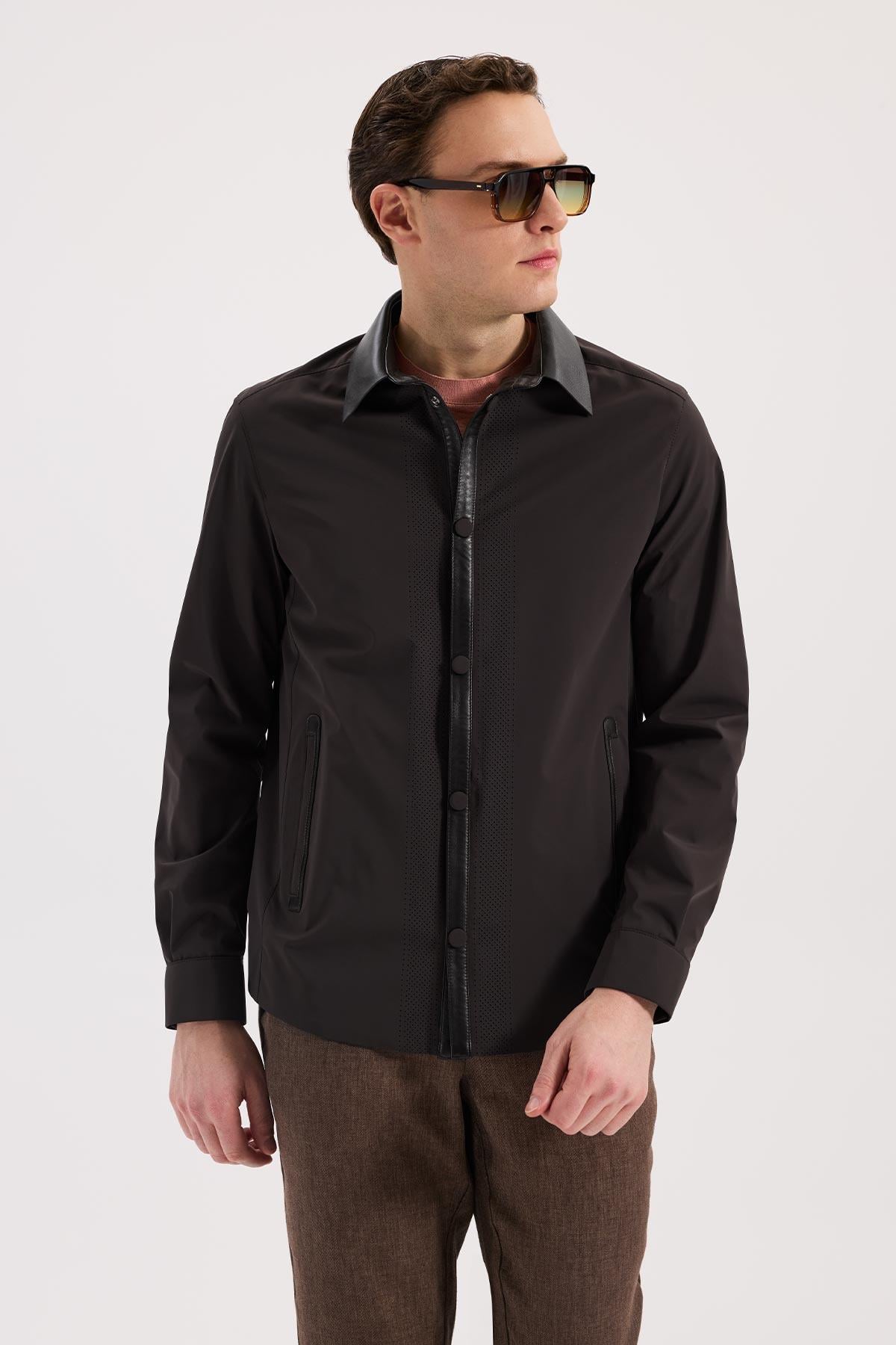 Kahve Rahat Kalıp - Comfort Fit Mont Berberi Yaka