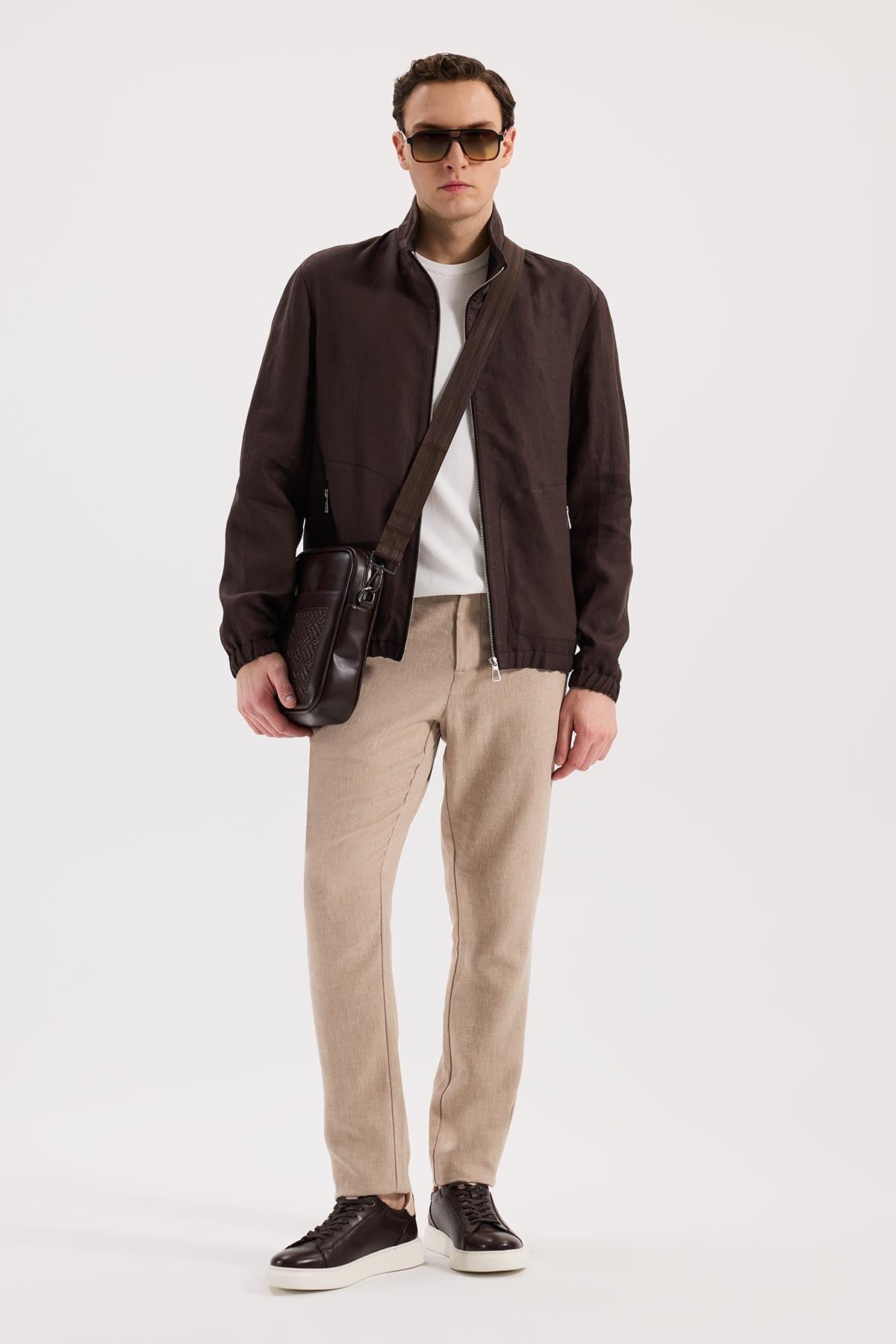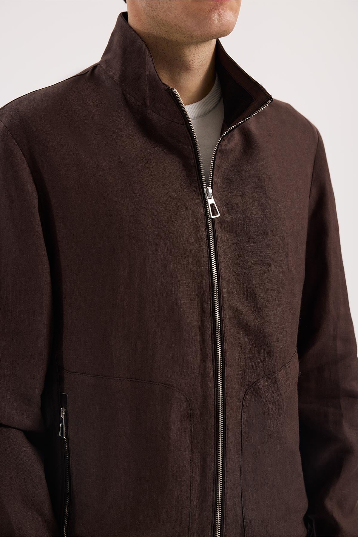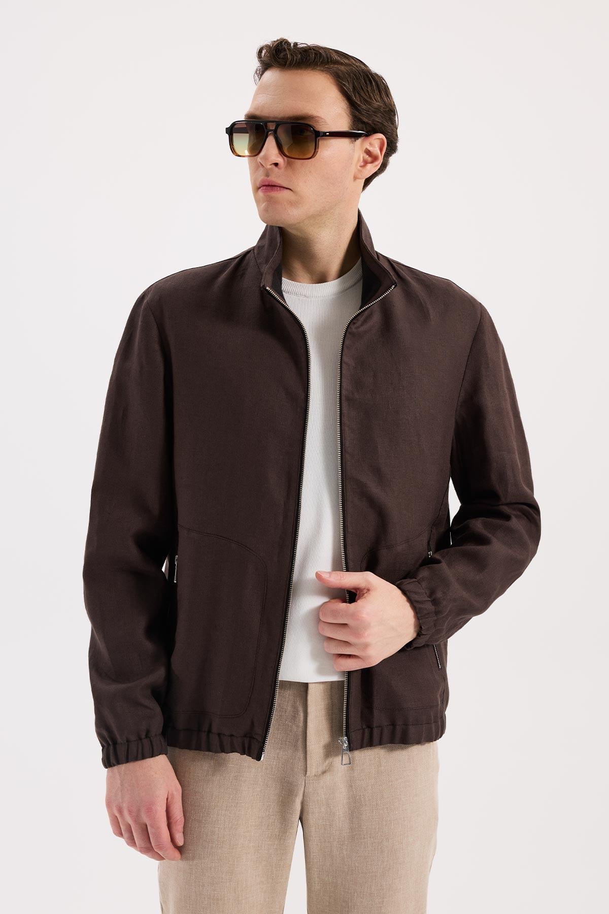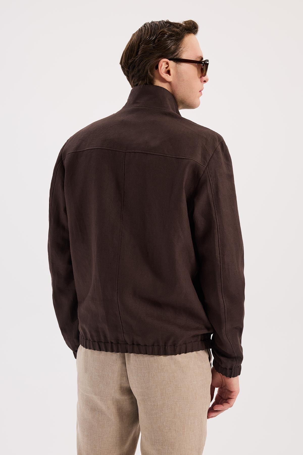 Kahve Rahat Kalıp - Comfort Fit Mont Dik Yaka