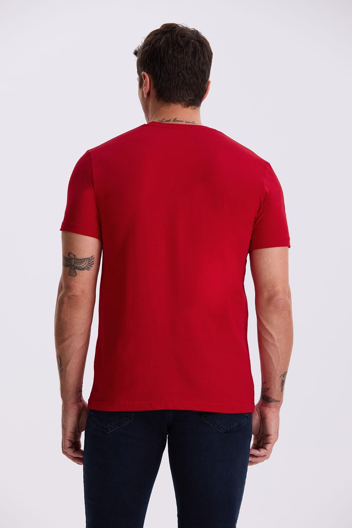 Kırmızı %100 Pamuk Slim Fit Bisiklet Yaka Basic T-Shirt