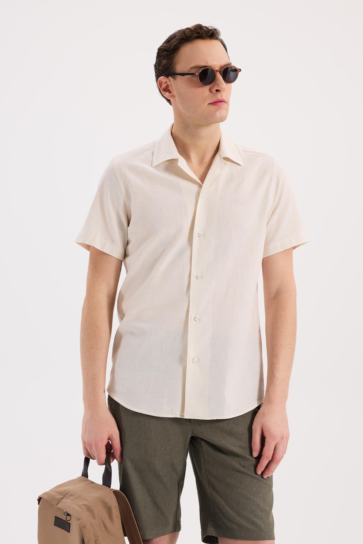 Krem Rahat Kalıp - Comfort Fit Gömlek Klasik Yaka