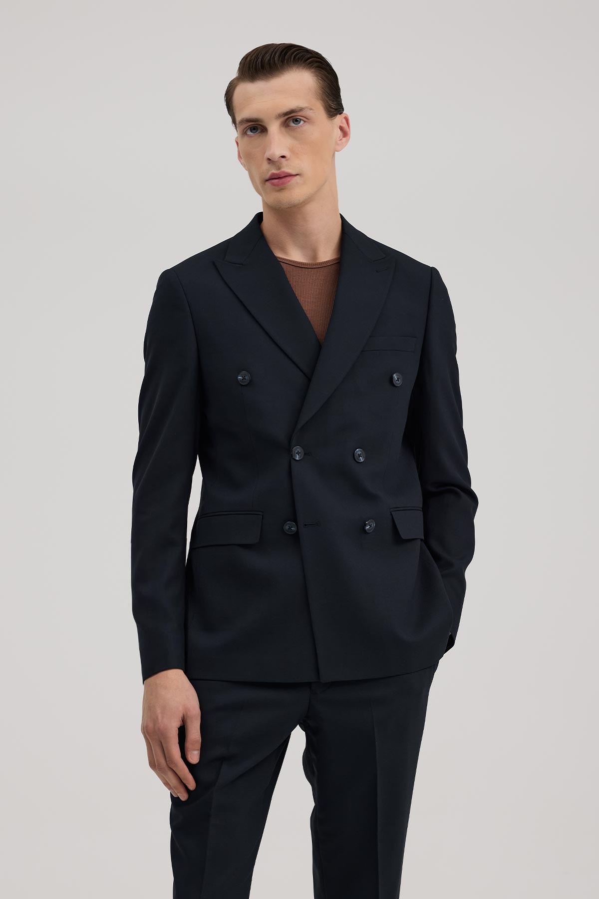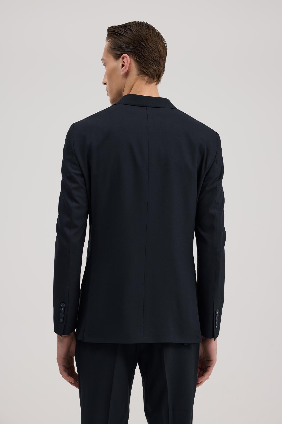 Lacivert Dar Kalıp - Slim Fit Takım Elbise Sivri Yaka