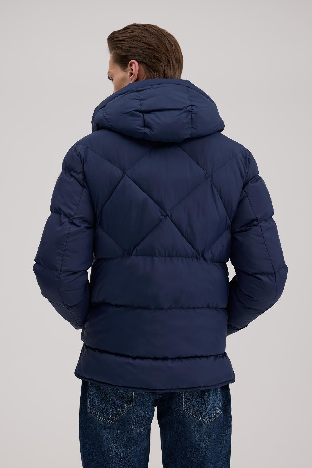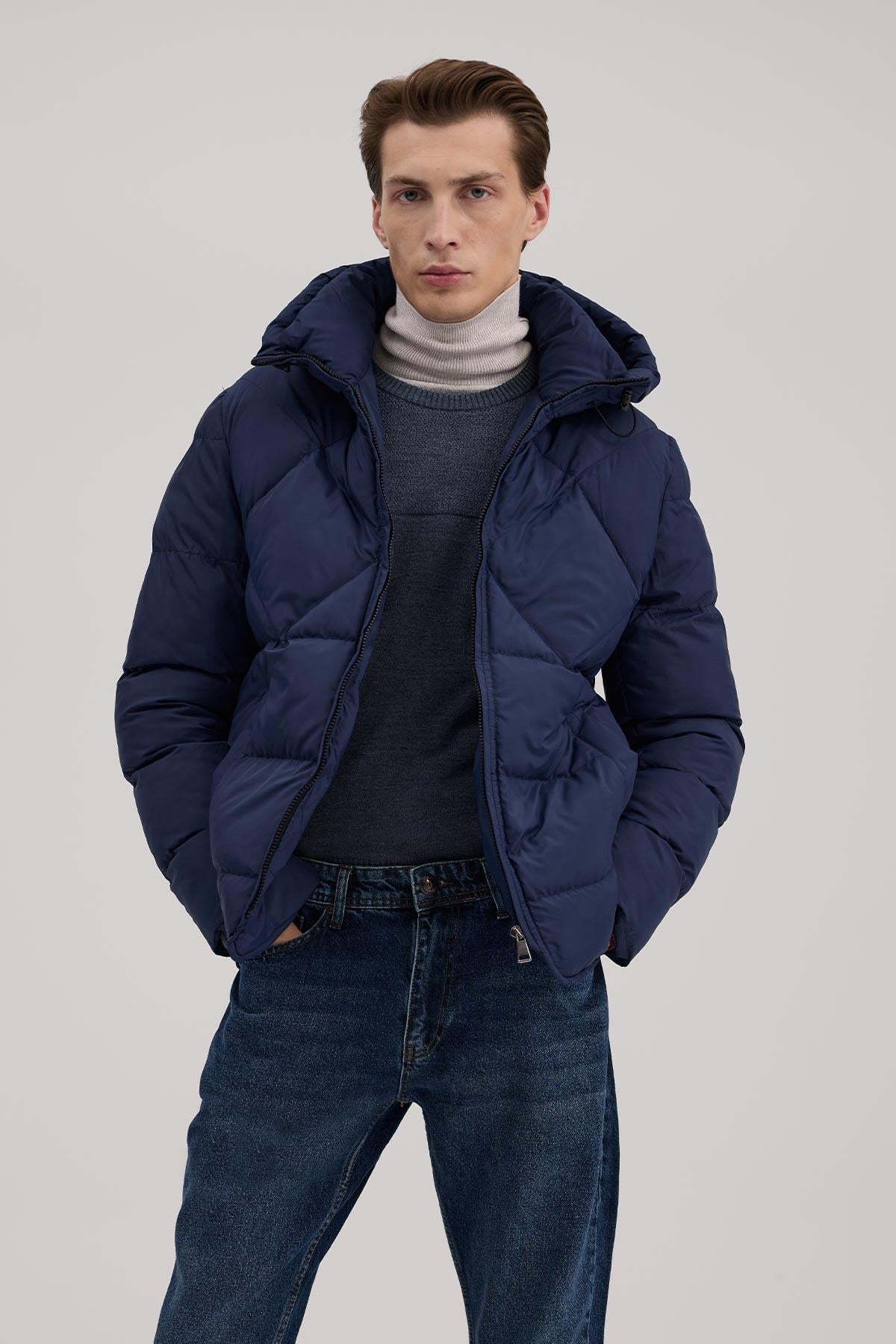 Lacivert Rahat Kalıp - Comfort Fit Mont Kapüşonlu