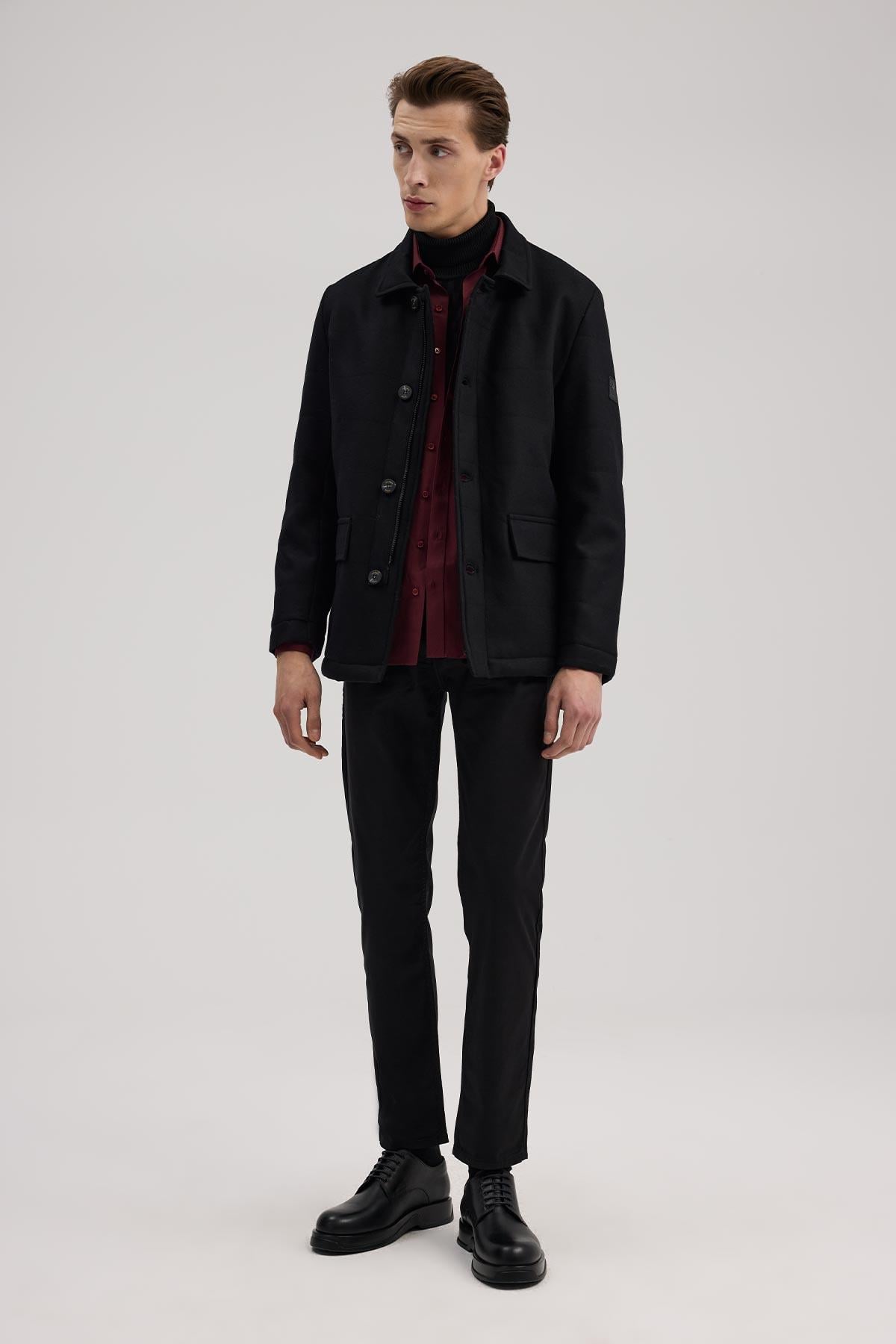 Siyah Dar Kalıp - Slim Fit Mont Mono Yaka
