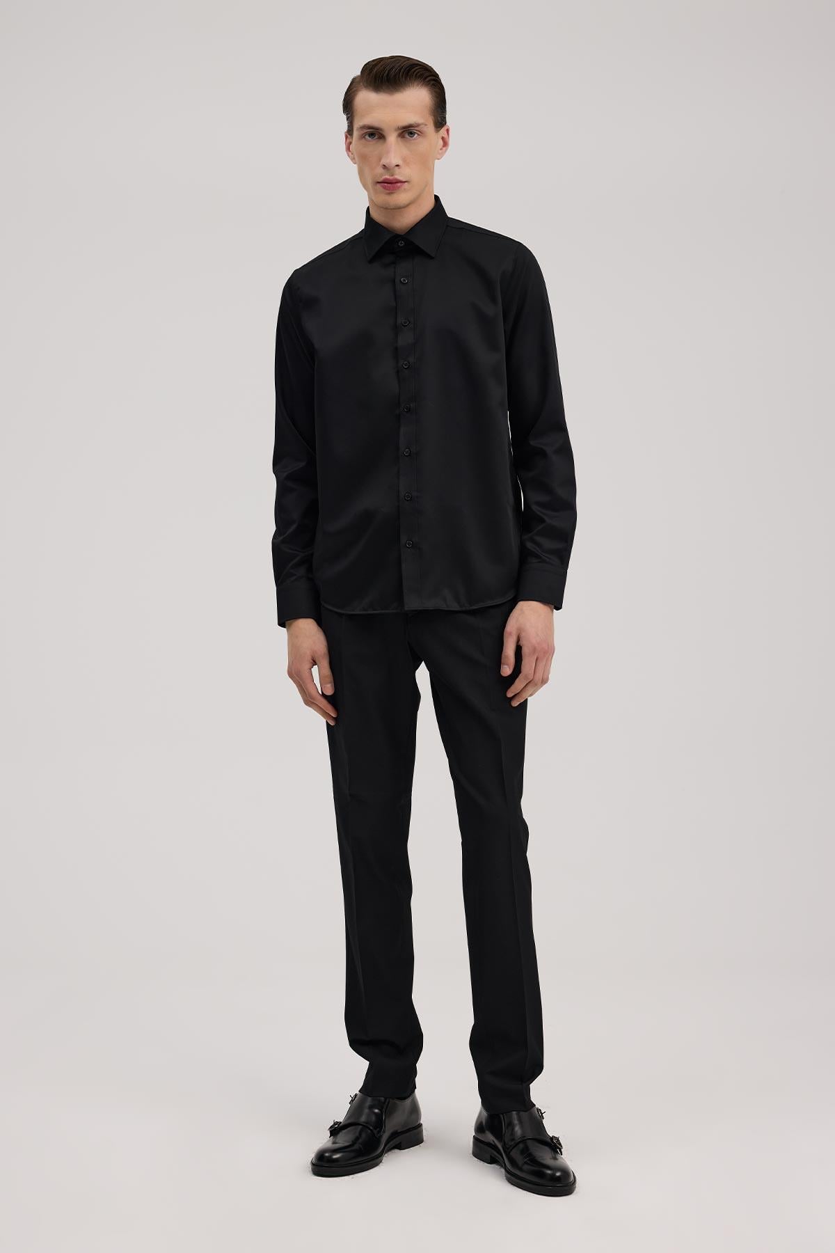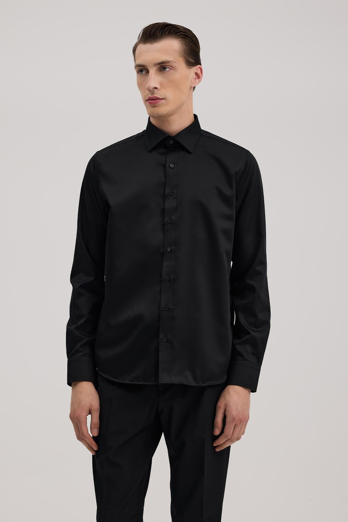 Siyah Rahat Kalıp - Comfort Fit Gömlek Klasik Yaka