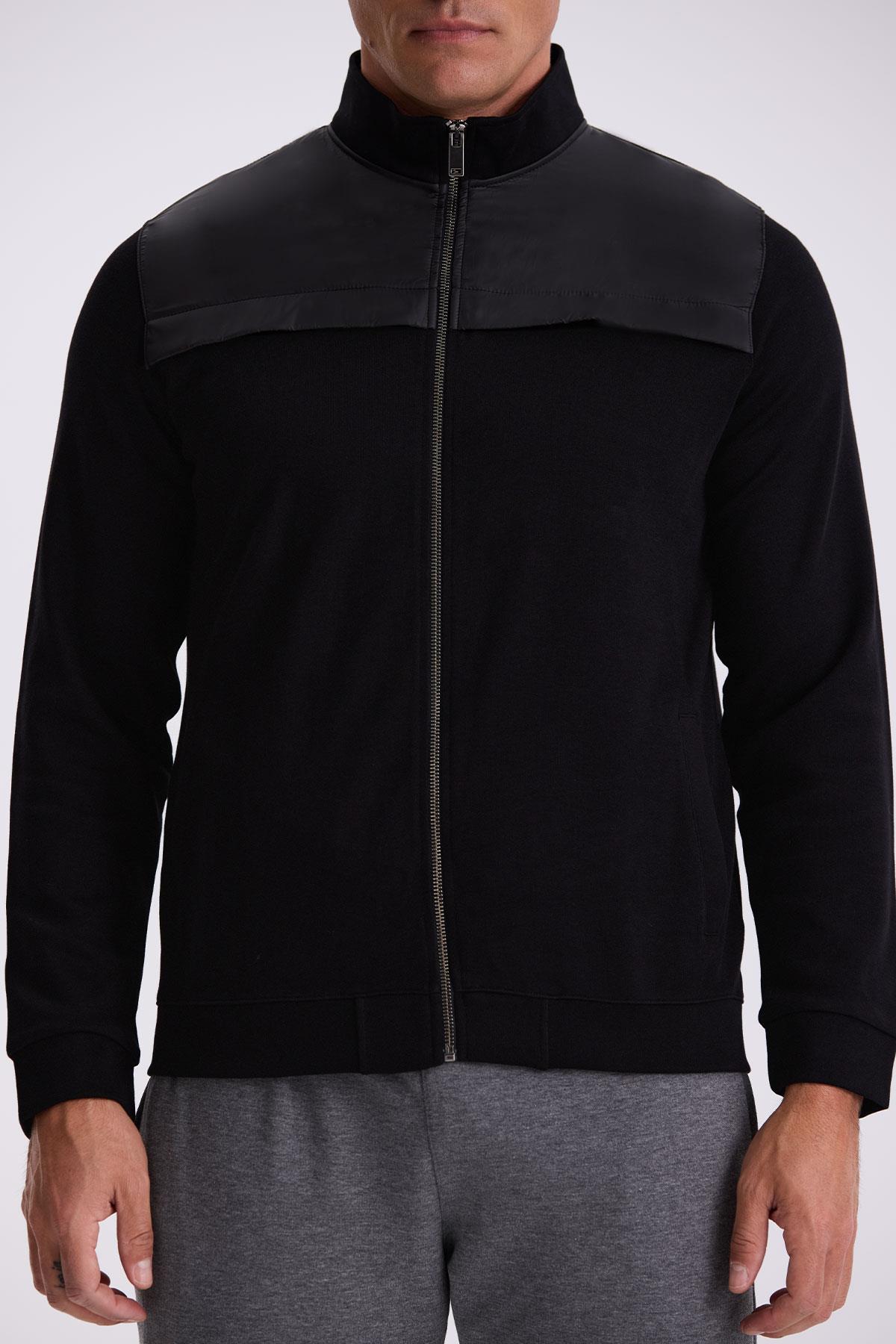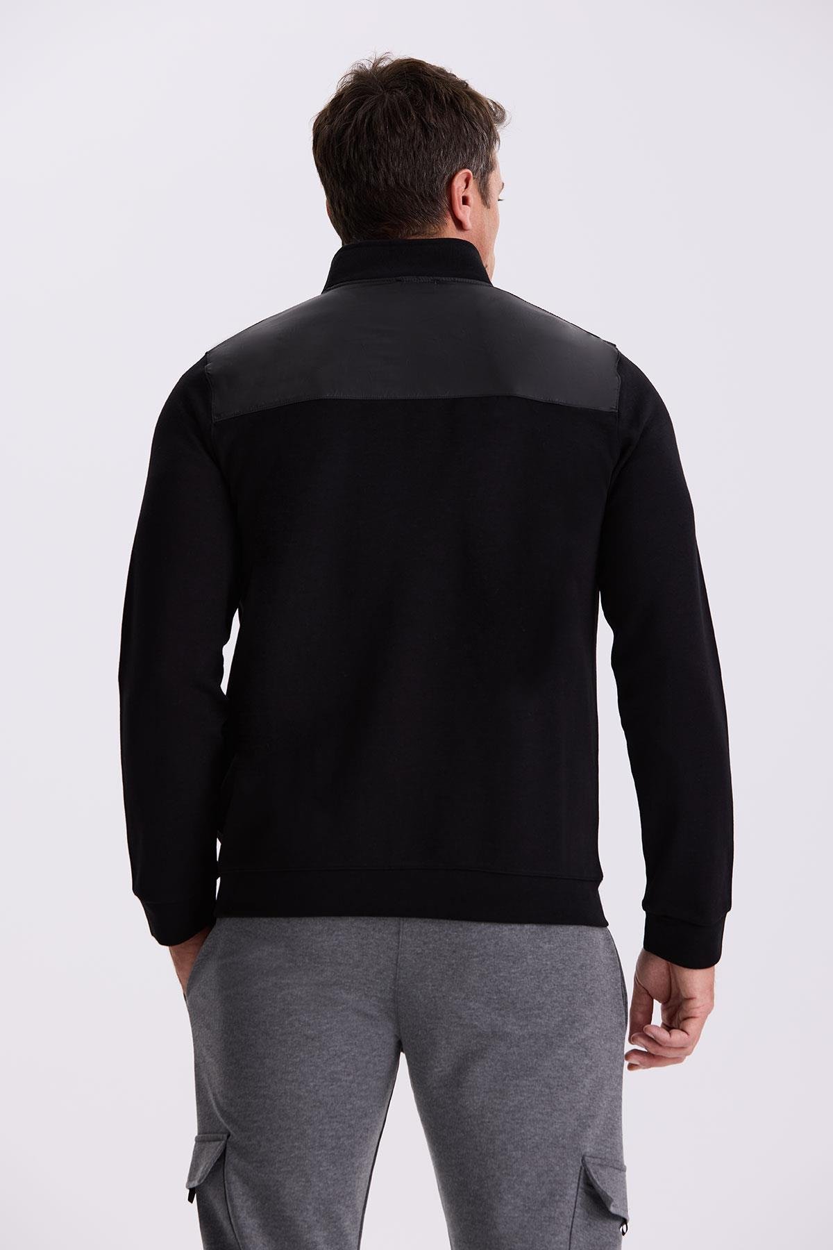 Siyah Slim Fit Fermuarlı Pamuklu Likralı Eşofman Üstü