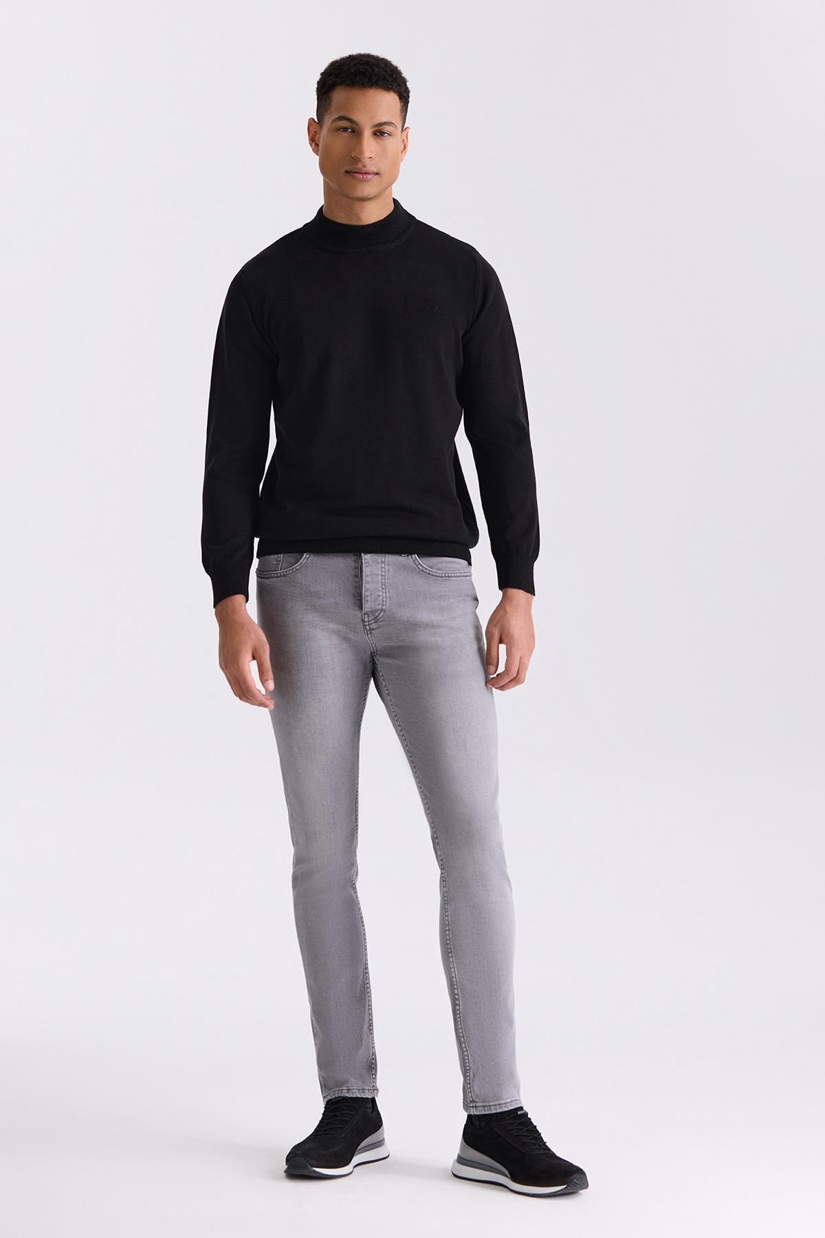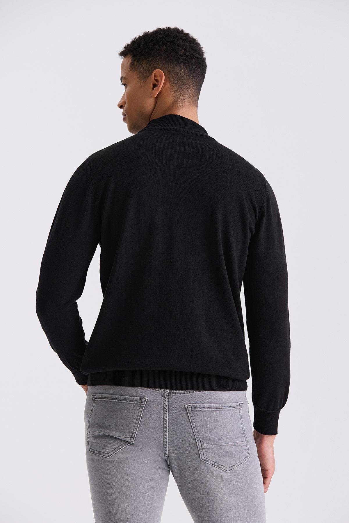 Siyah Slim Fit Yarım Balıkçı Triko Kazak