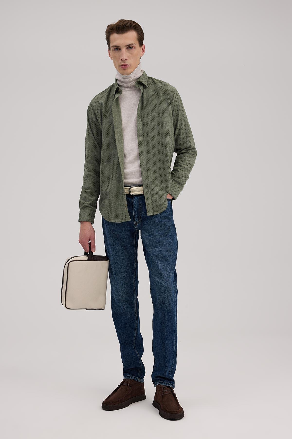 Yeşil Rahat Kalıp - Comfort Fit Gömlek Alttan Düğmeli Yaka