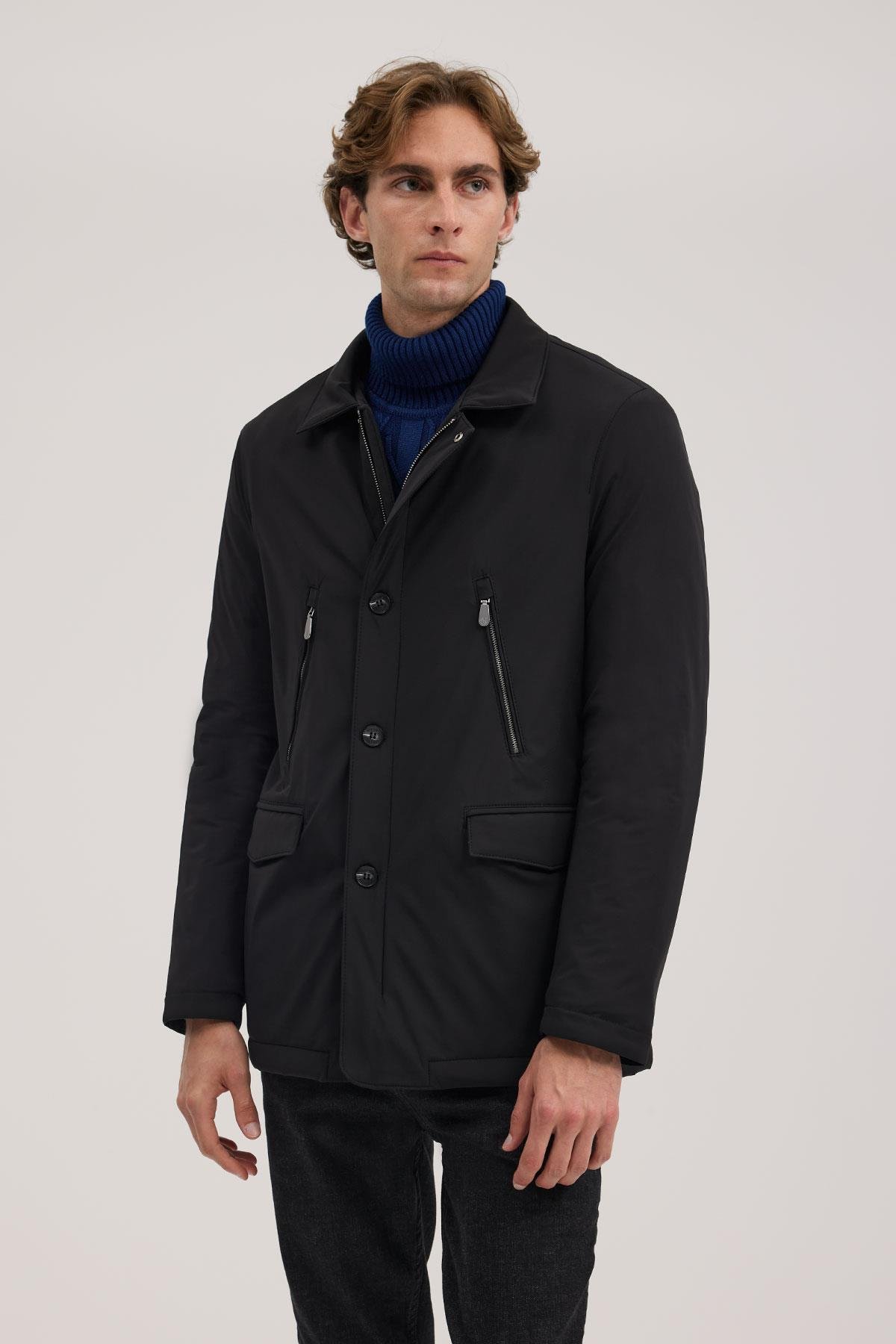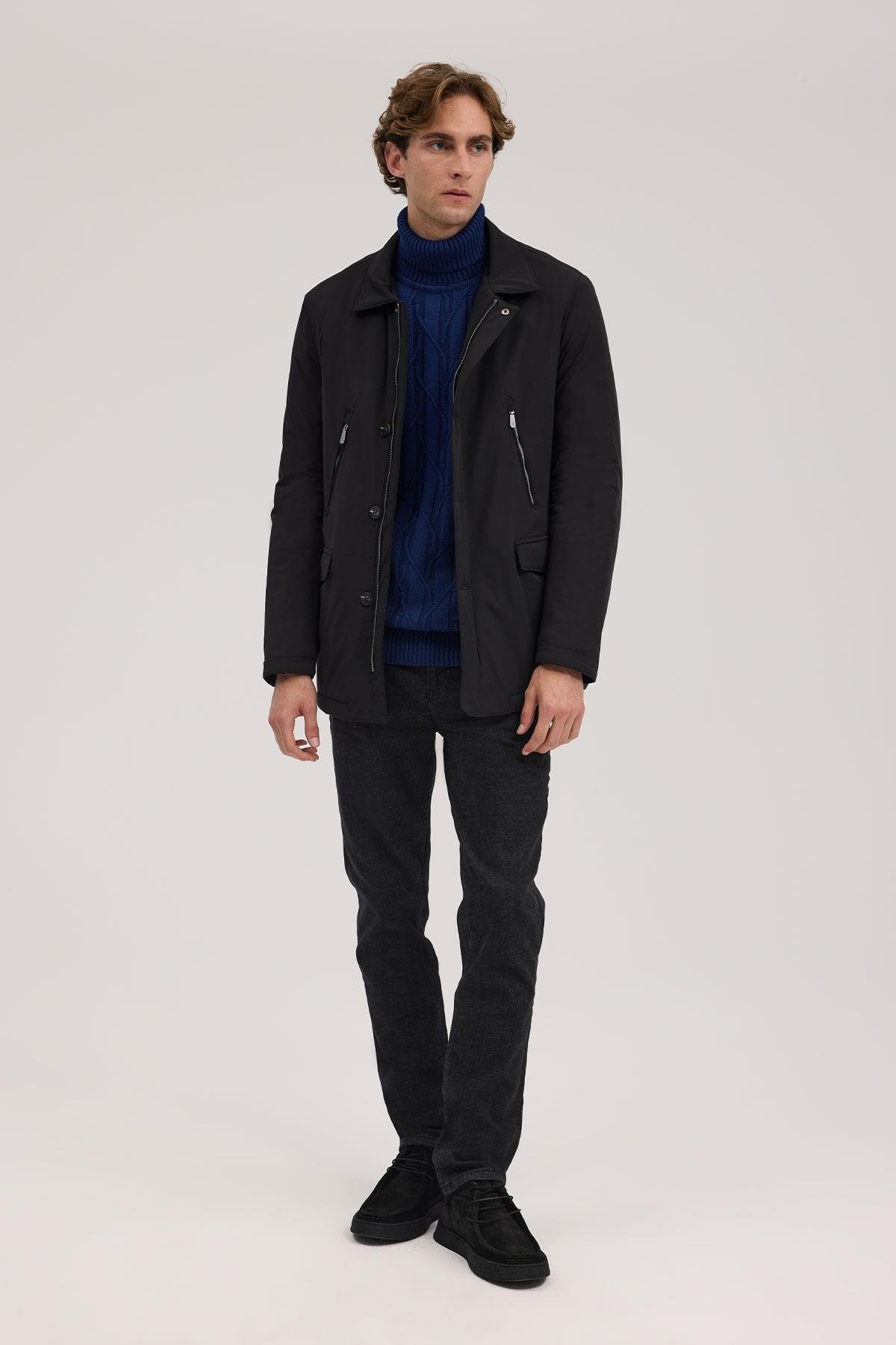 Siyah Comfort Fit Bebe Yaka Fermuarlı Mont