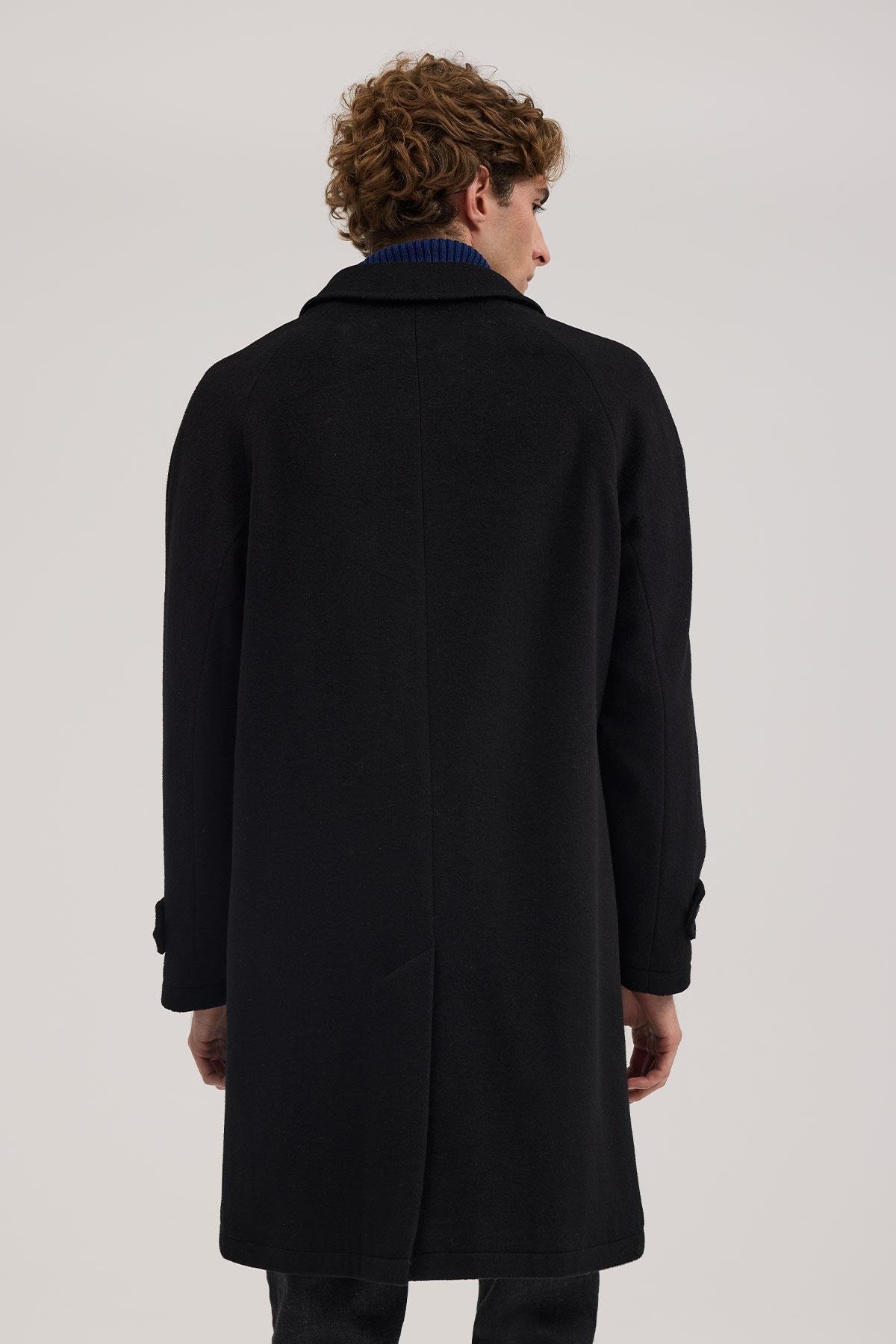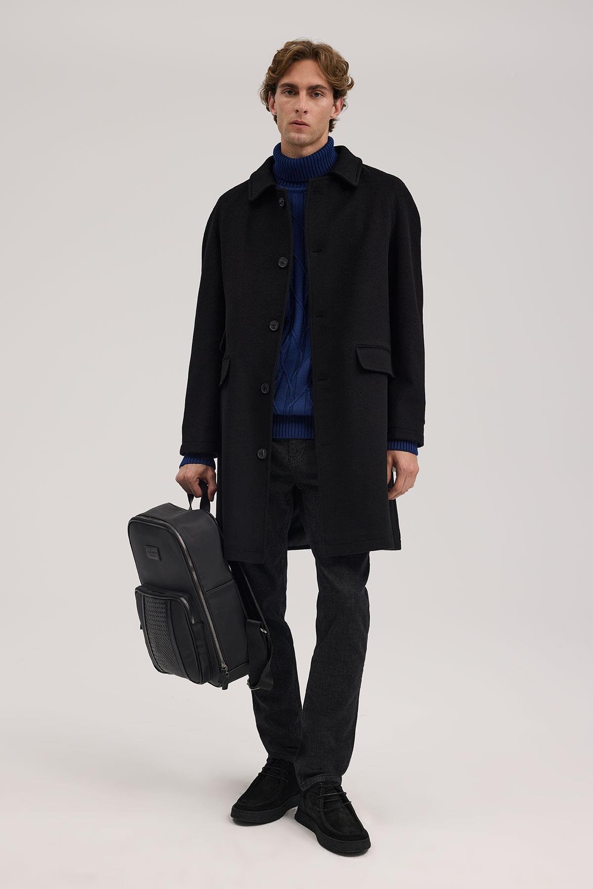 Siyah Comfort Fit Bebe Yaka Yünlü Kaban