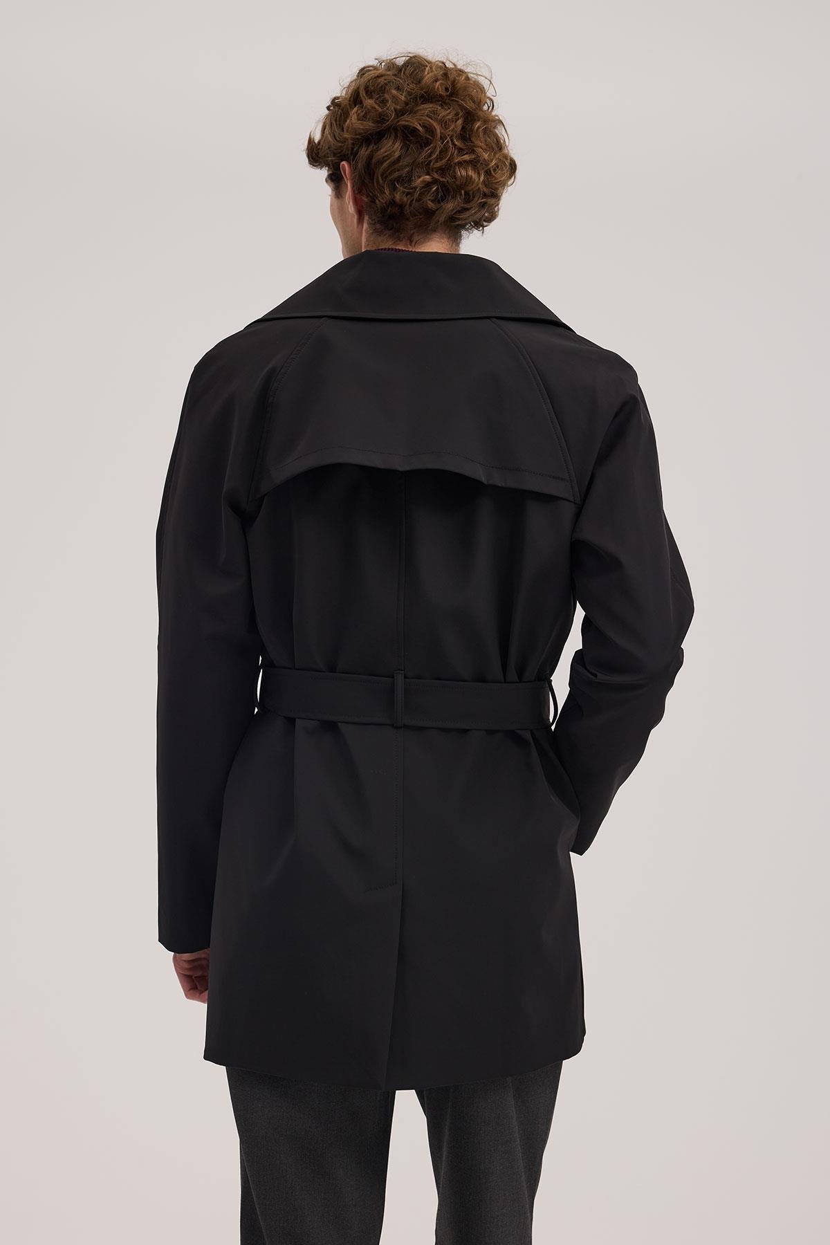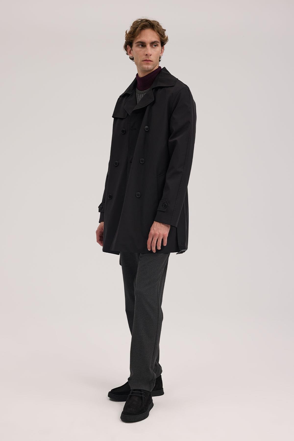 Siyah Comfort Fit Kruvaze Kemerli Trençkot