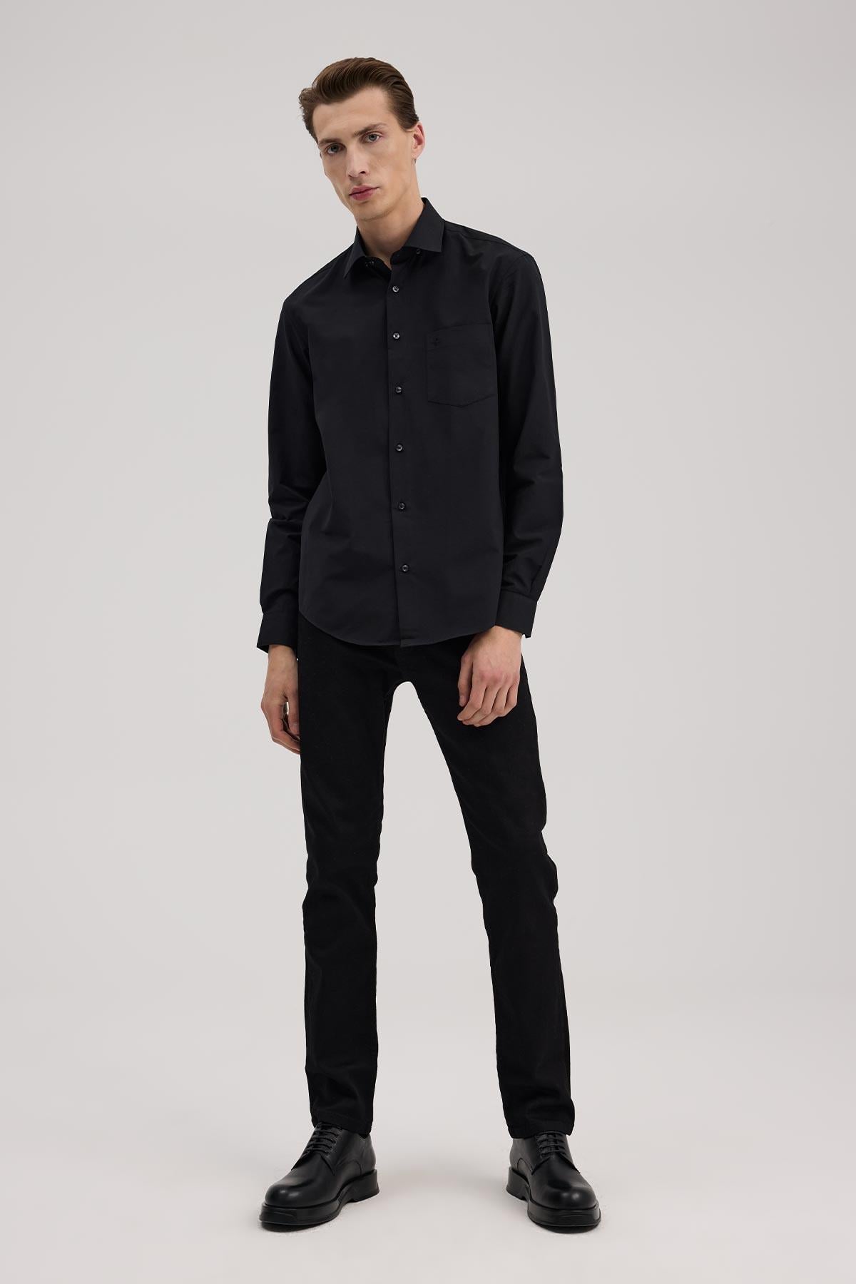 Siyah Klasik Fit İtalyan Yaka Uzun Kol Klasik Kravatlık Kolay Ütülenebilir Pamuklu Gömlek