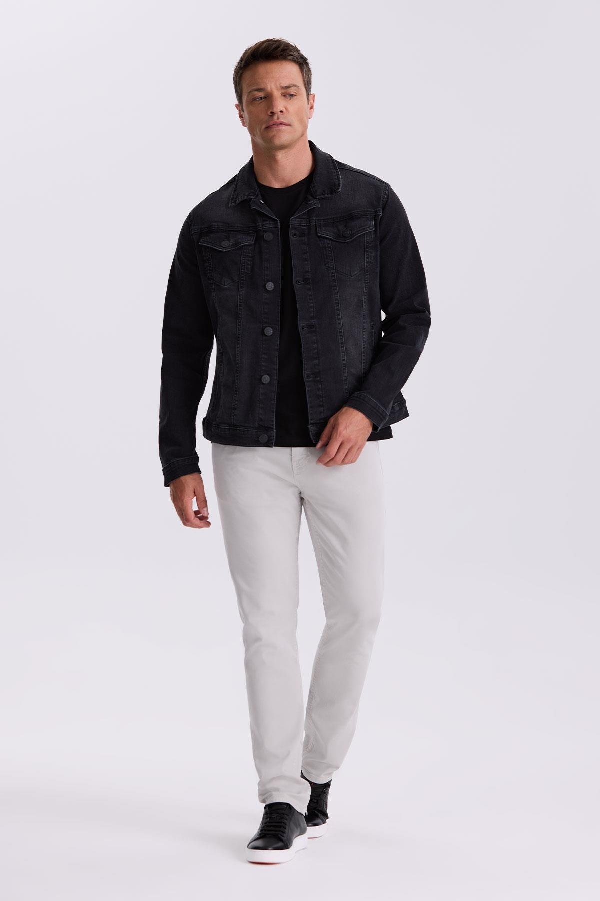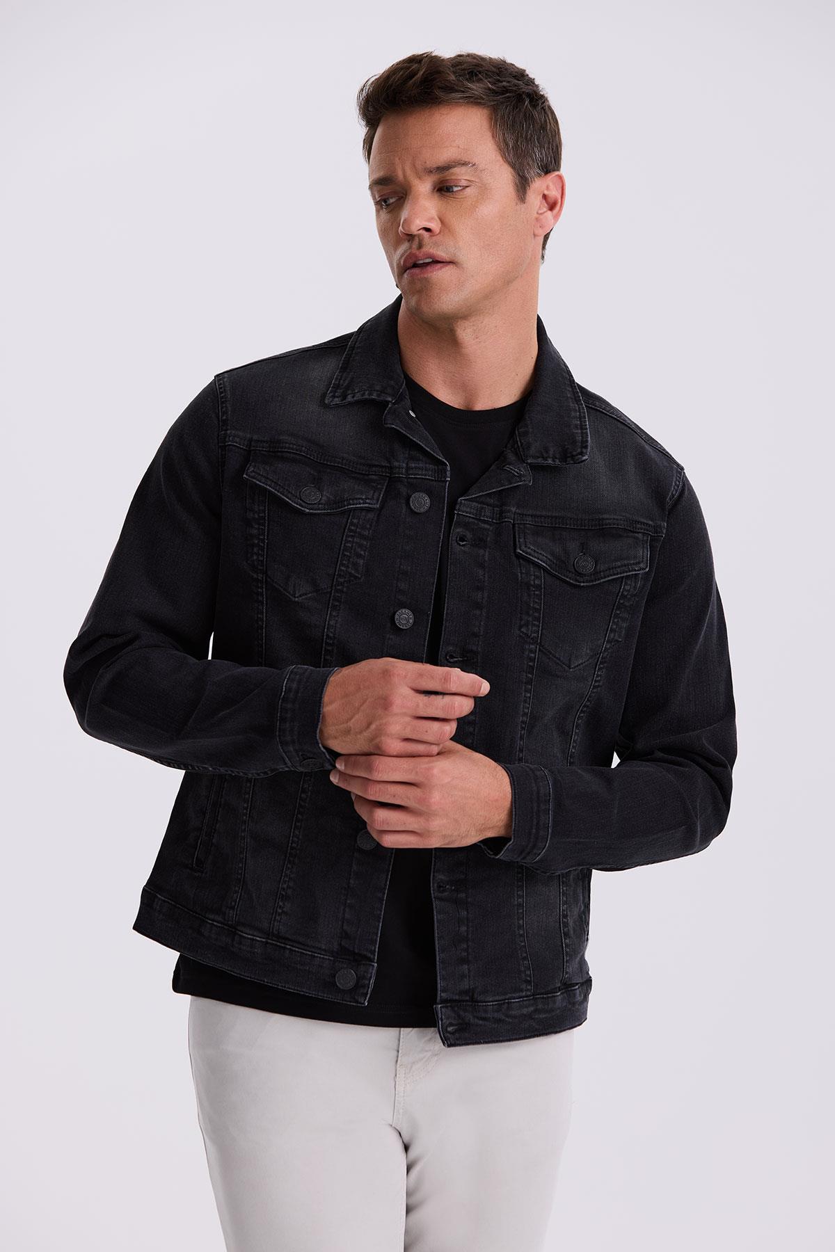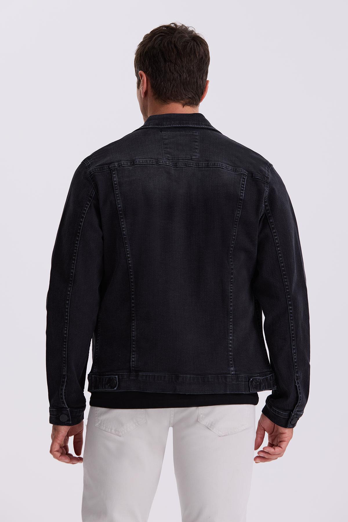 Siyah Slim Fit Bebe Yaka Pamuklu Cepli Denim Kot Ceket