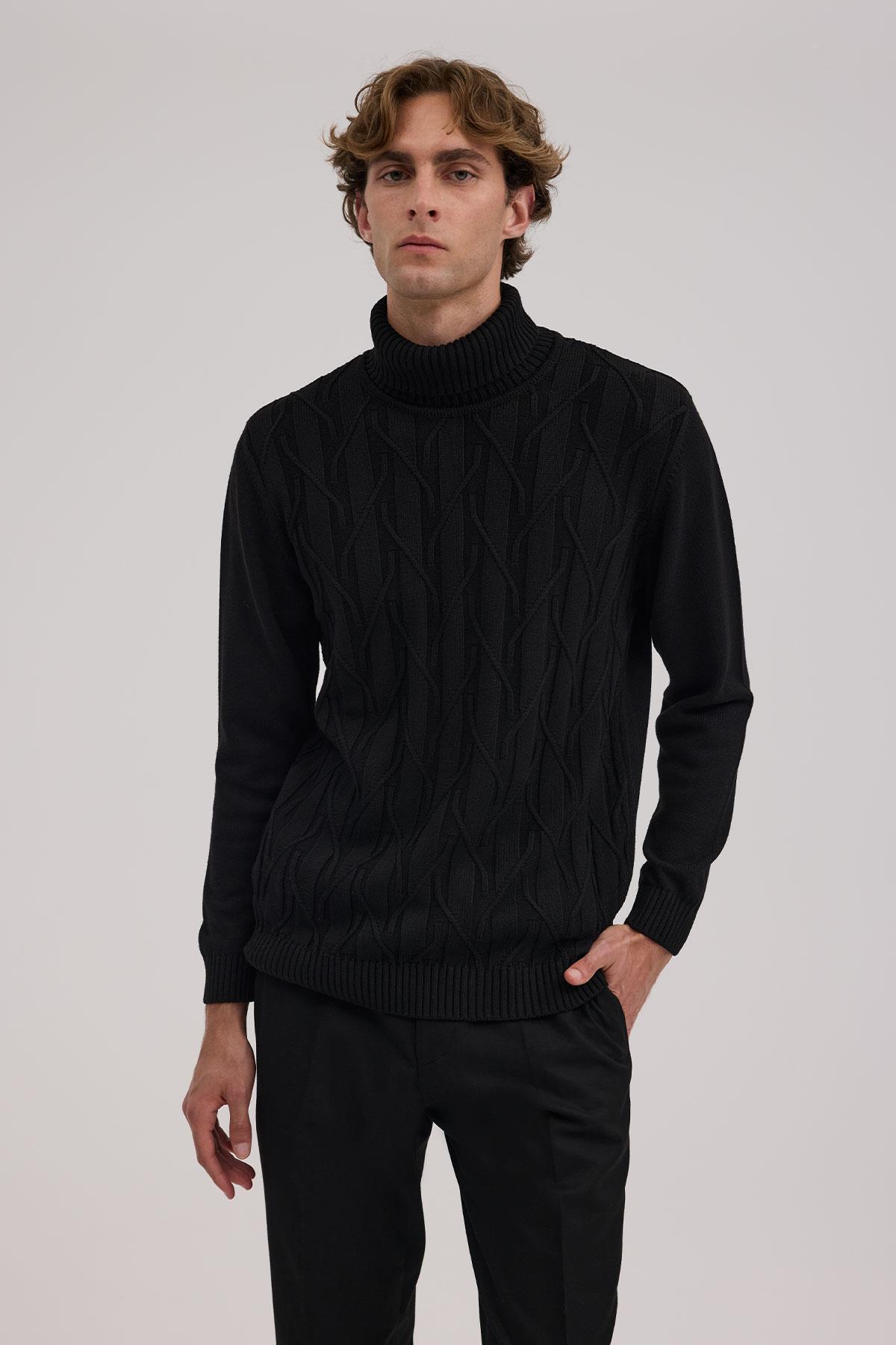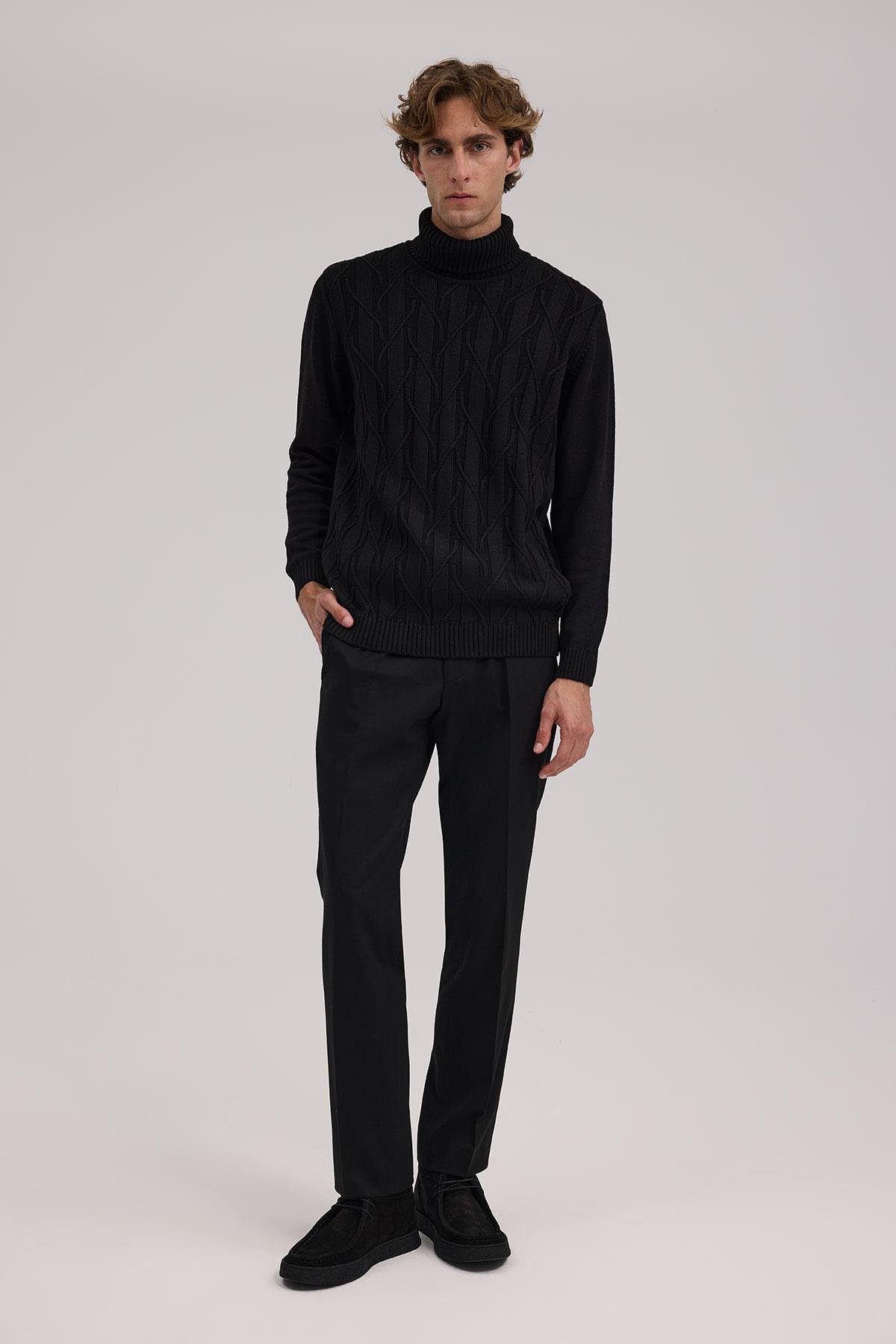 Siyah Slim Fit Desenli Tam Balıkçı Yaka Triko