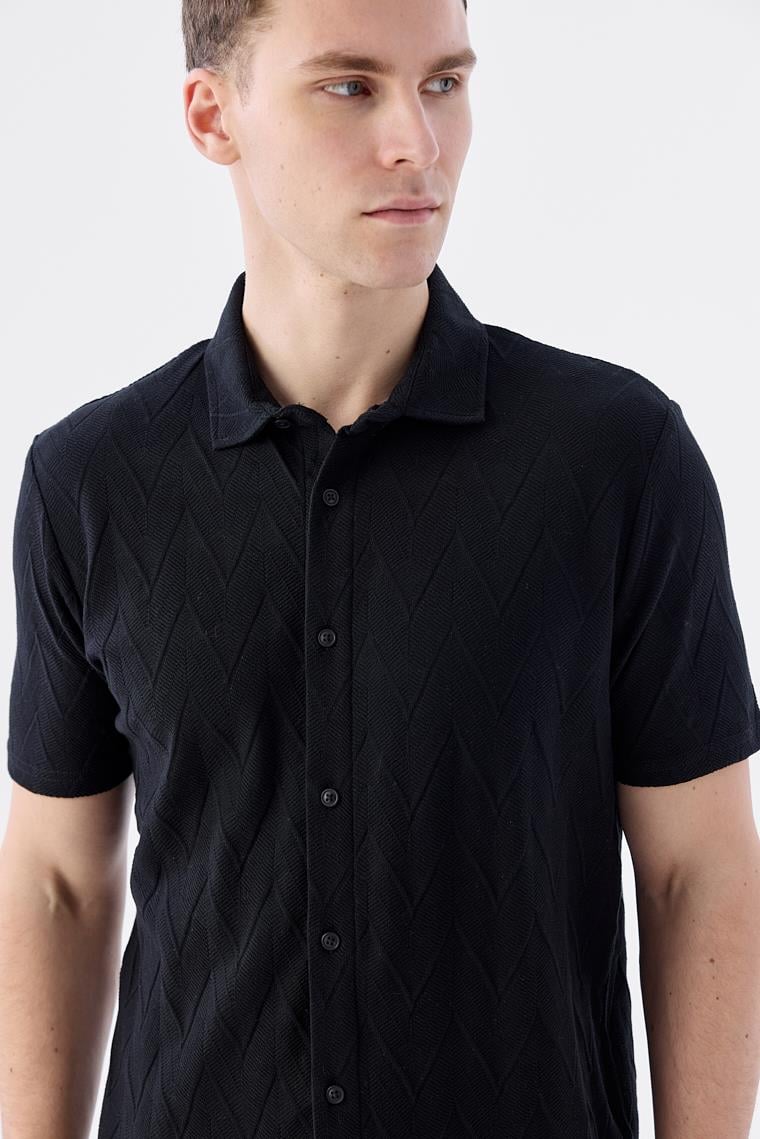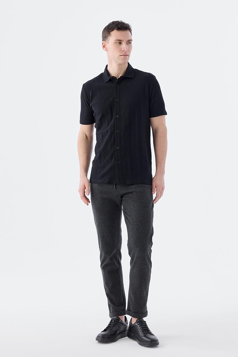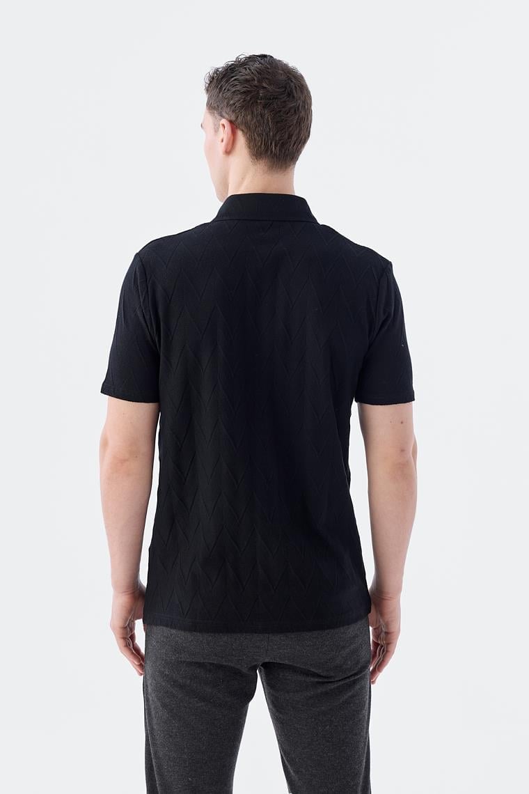 Siyah Slim Fit Gömlek Yaka T-Shirt
