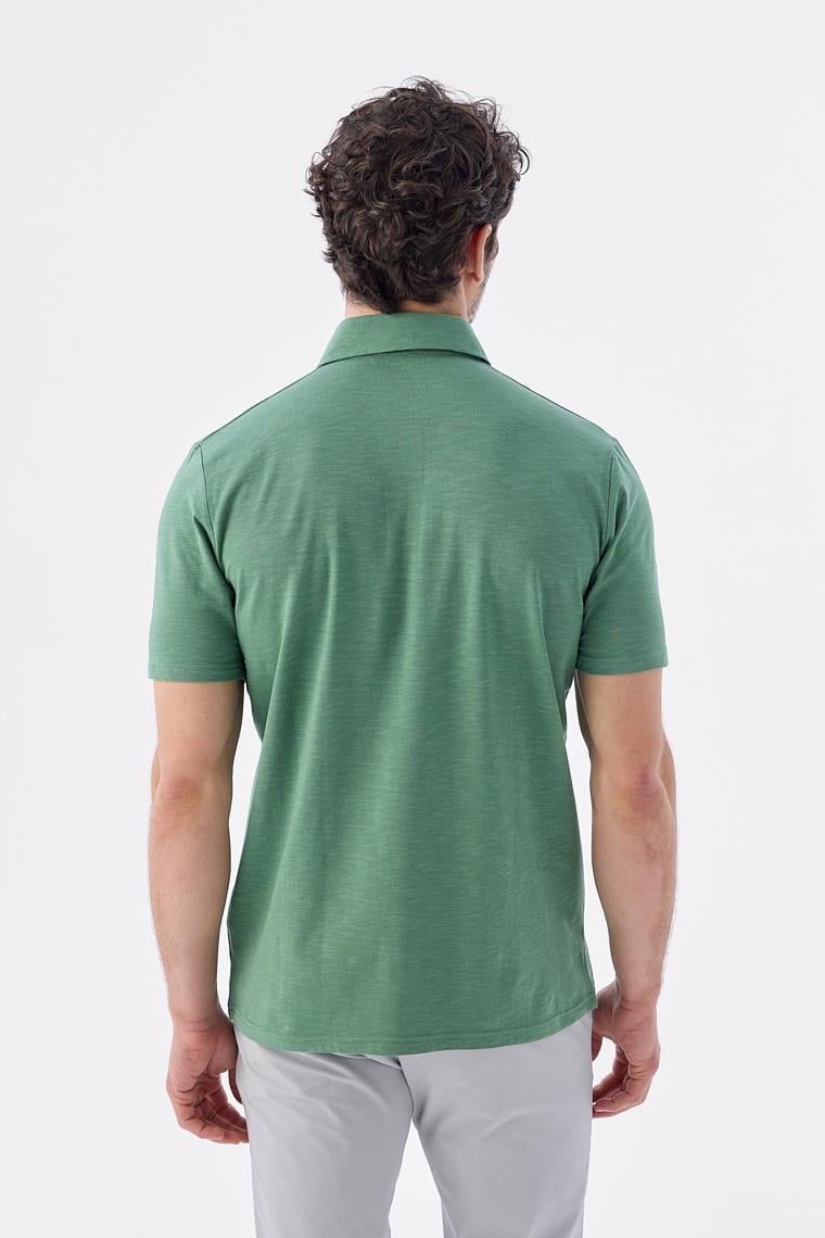 Yeşil Düğme Detaylı Slim Fit Polo Yaka T-Shirt